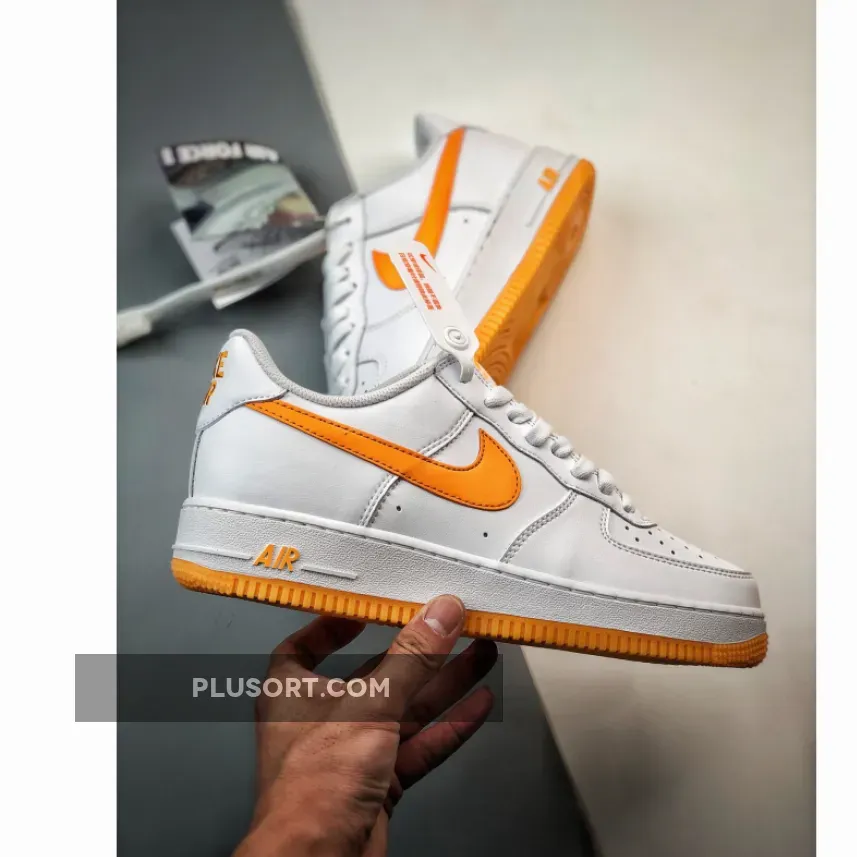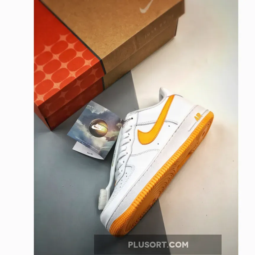 The Nike Air Force 1 Low Waterproof is refashioned in a fresh, zingy colourway titled White Gold. Premium white leather wraps around the whole upper in a panelled construction and is finished with neat topstitching. The toe box is punctured with ventilation ports for optimum breathability and the lining follows suit—it’s rendered in airy mesh that’ll keep the air circulating. Hitting the medial side is a signature Swoosh logo in vivid orange.