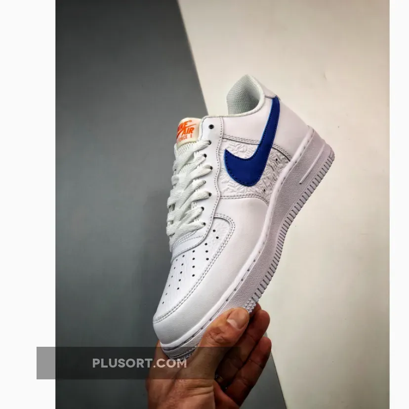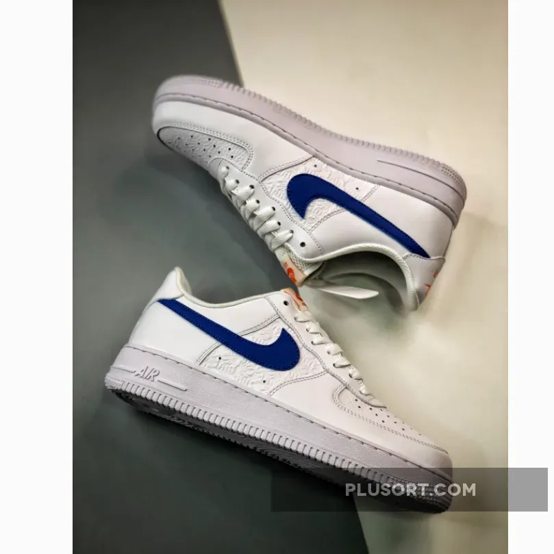 The dainty Nike Air Force 1 Low Hoops Royal Blue will charm you with its unique design that comes with a simple but impactful twist. It works with a smooth white leather upper that features a breathable perforated toe. But what will catch your eye is the intricate embossed floral design on the midfoot panel. Meanwhile, a touch of colour comes via the sleek blue Nike Swoosh. Elsewhere, the lightweight tongue and heel tab comes with orange branding.