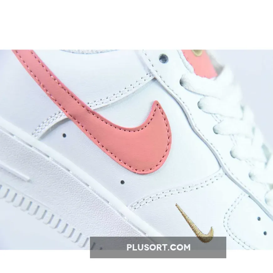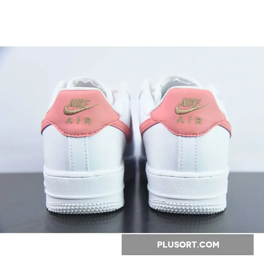 this Nike Air Force 1 features a White and Rust Pink color combination. Utilizing White leather across the uppers while perforations land on the side and toe box. Next, Rust Pink lands on the Swoosh logos, tongue, heel, and insoles, while Gold embroidery lands on the branding. Lastly, Metallic Gold hits the AF1 lace jewel, and White appears on the midsole and rubber outsole.