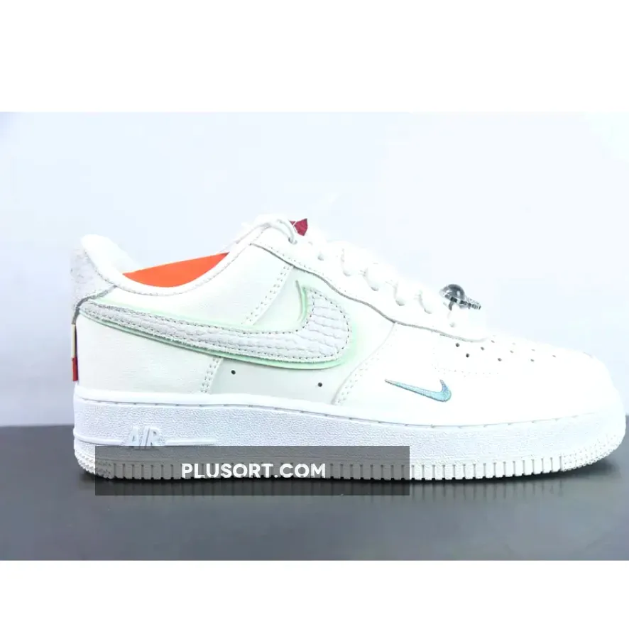 The subdued, sail-toned top of the Air Force 1 Low highlights its minimalism. However, this modest base serves a special purpose. It acts as a canvas, which enables precisely molded embellishments to take center stage. The most eye-catching of them are the swooshes with a reptilian-like feel that run across each side wall.