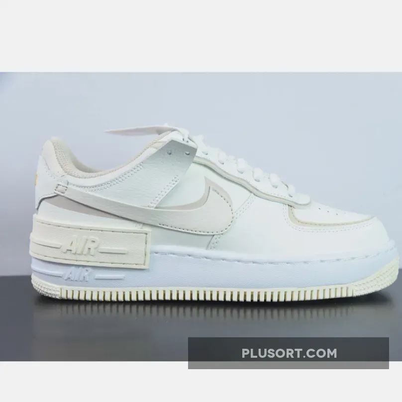 This AF1 Shadow has a neutral-based palette consumes the upper with a cream-based dominance while darker tan accents ascertain the contoured panels and tongue construction. It’s two eyestays, two mudguards and two Swoosh logos. In short, it delivers on the layered aesthetic with double the highlights. The main Swooshes and the heel tabs bring a touch of light tan to the silhouette. A white midsole with double “AIR” branding and a dual-toned grey rubber outsole finish off the entire ensemble.