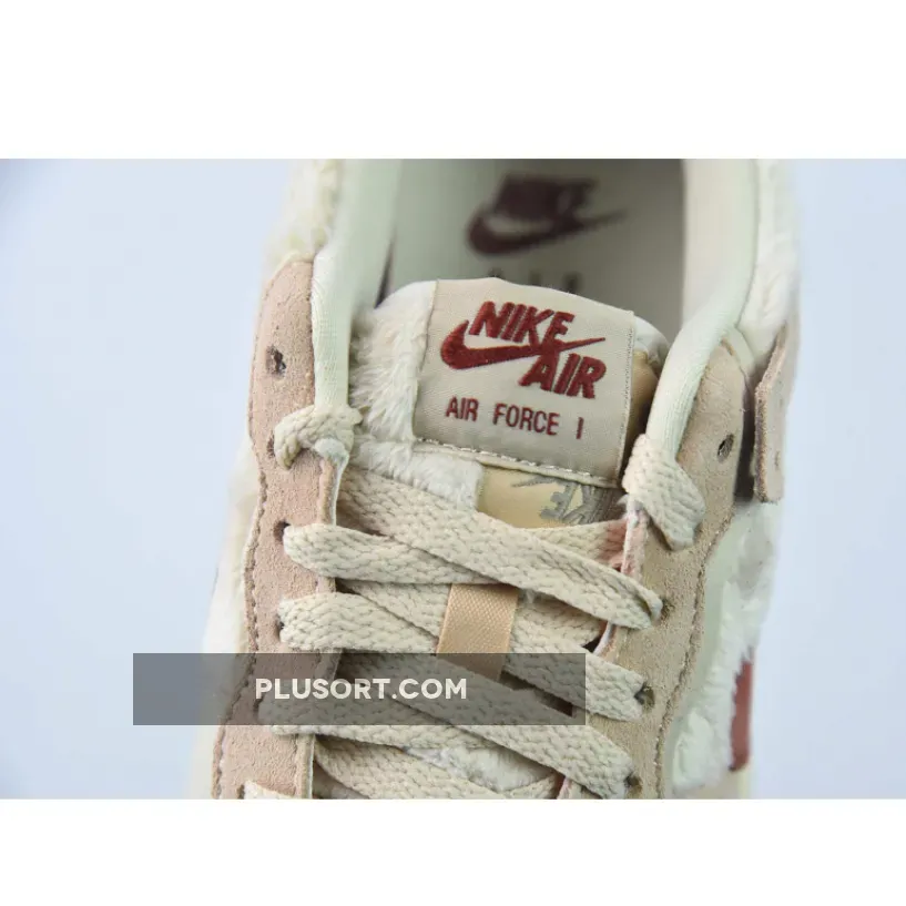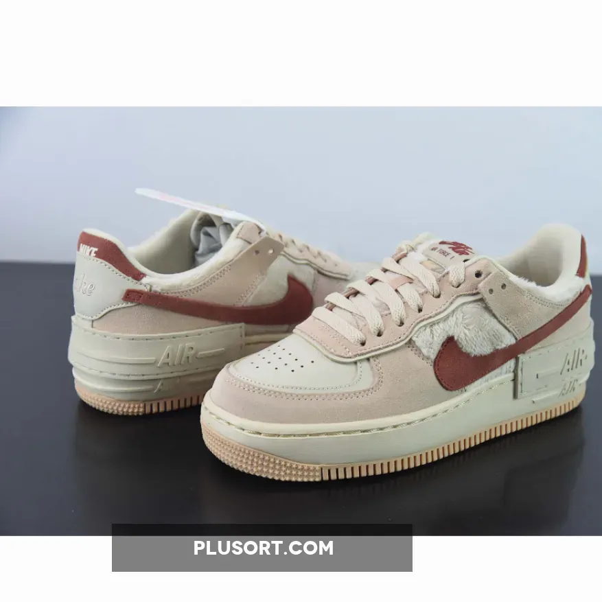 An attractive Mars Stone hue lands on the surface of a Swoosh, matching the heel-tab and the Nike Air logo on the tongue. Sitting just below that logo is a fuzzy plush exterior reminiscent of stuffed animals — an aesthetic emphasized by the light brown exterior.
