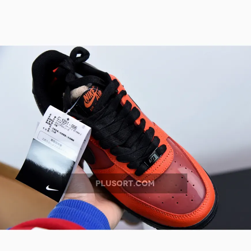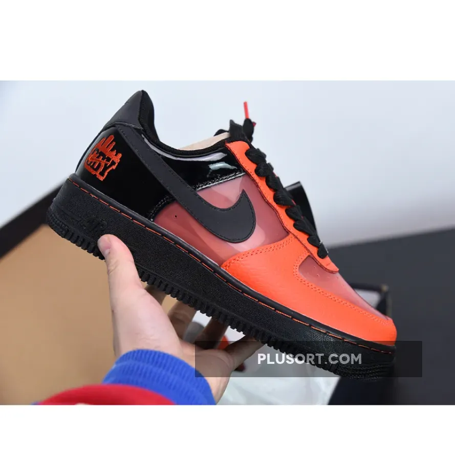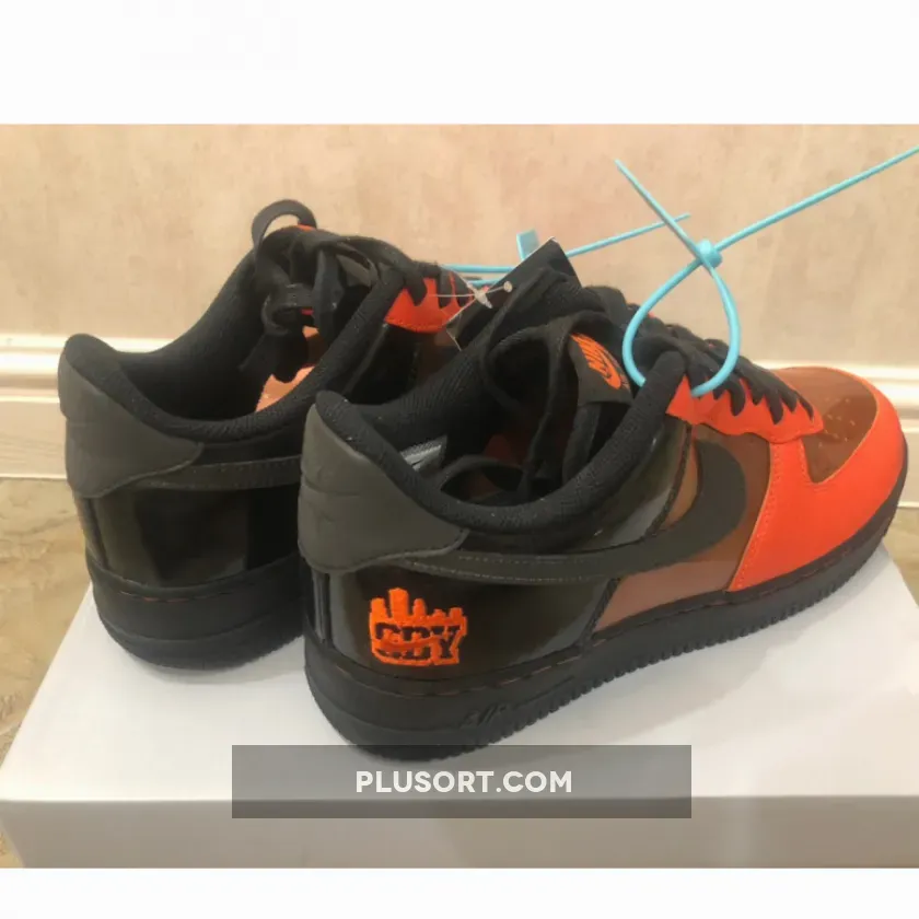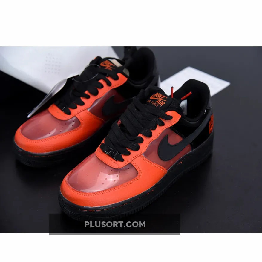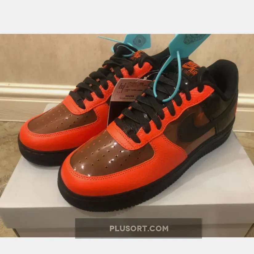 Solid color scheme and design on the Air Force 1 Low “Shibuya Halloween.” Quality materials, comfy fit. Translucent side panels add a unique touch. Good value for a premium sneaker.