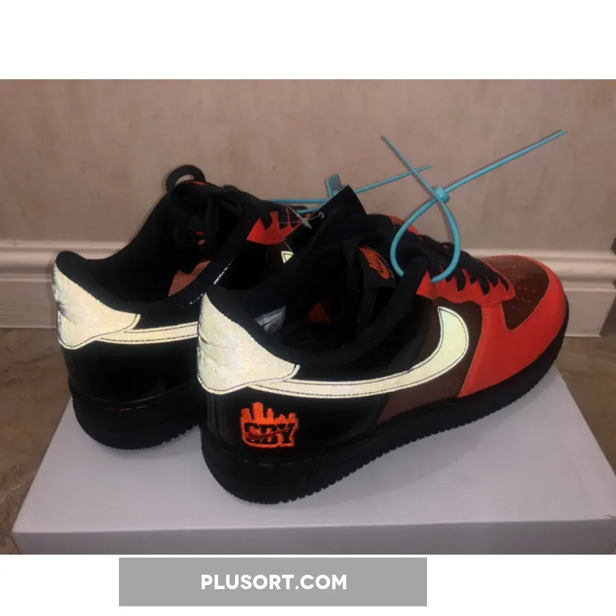 Solid kicks! Color scheme on point. Need better shipping option though, takes ages. #NikeAF1Halloween #SneakerGoals #WorthTheWait.