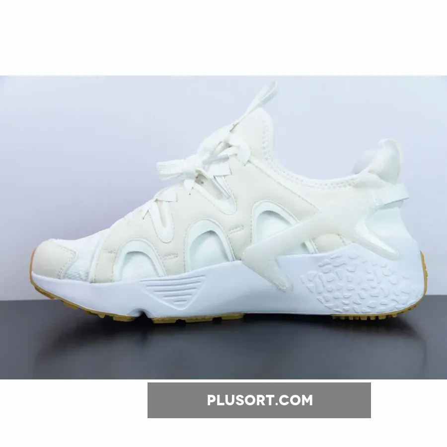 A more statement-making and edgy version of Tinker Hatfield’s sandal-sneaker hybrid design, the Nike Air Huarache Craft Sail Gum is minimalist yet bold at the same time. This offering of the Nike Air Huarache Craft features an Off-White/Sail neoprene bootie with a mesh toe box and suede panels. More noteworthy details include the convenient pull tab and the milky semi-translucent heel clip. This Nike Air Huarache Craft finishes with a soft colourless midsole and textured gum rubber outsole with fun-looking lugs.