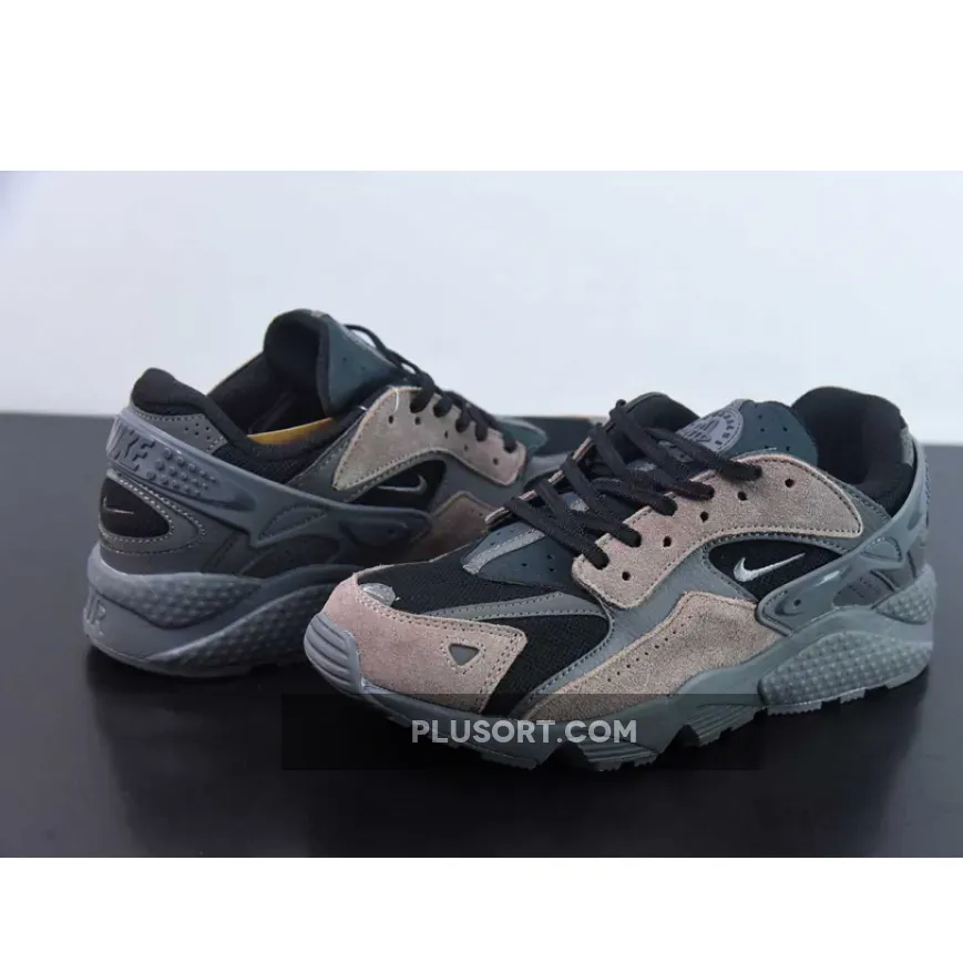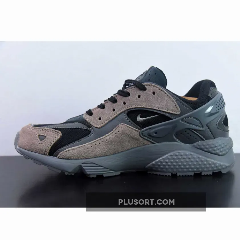 This pair is given a predominantly Black base that’s then paired up with overlays arriving in Medium Ash and Anthracite. A miniature swoosh also lands on the profiles, delivering a big change from Hatfield’s original Nike Air Huarache idea.