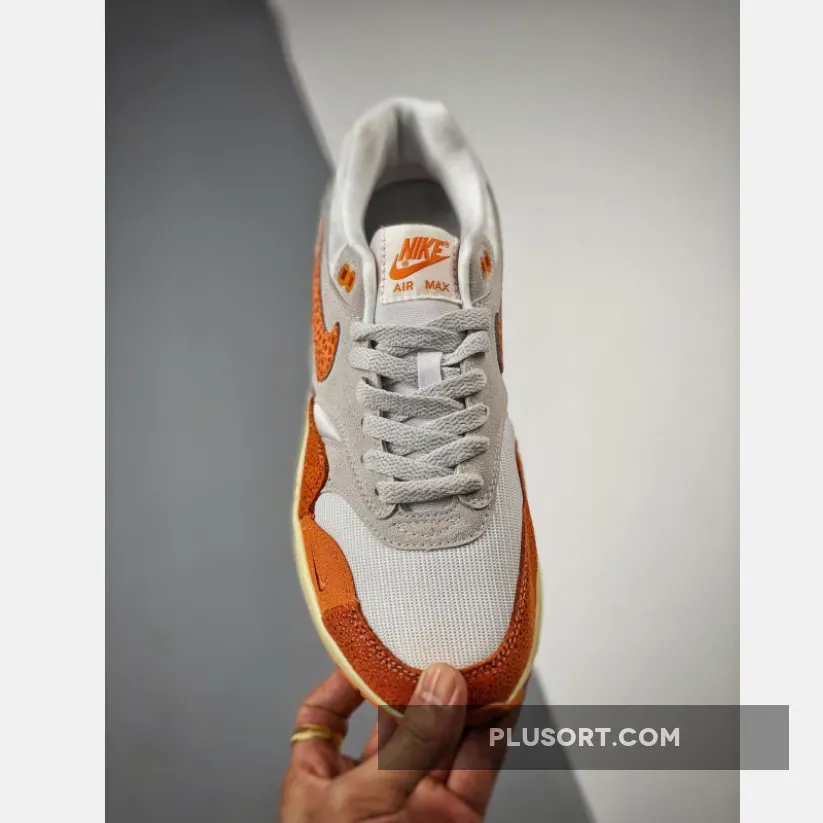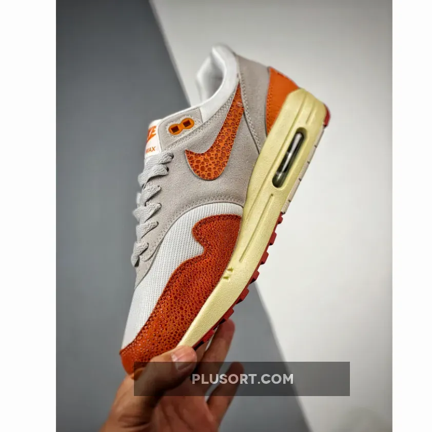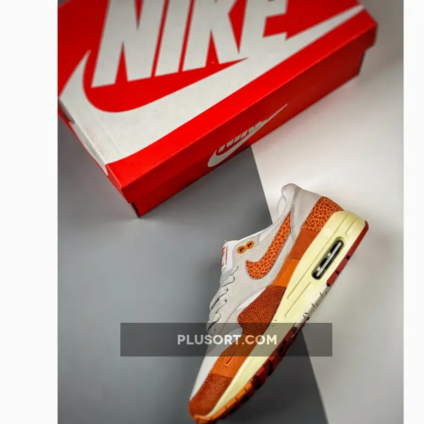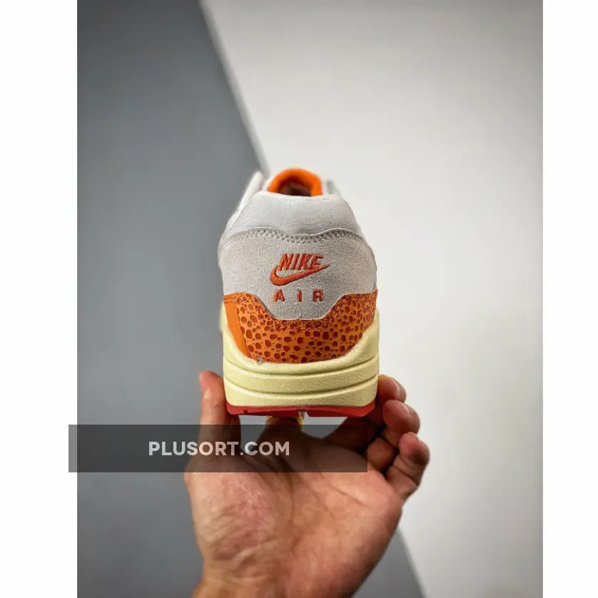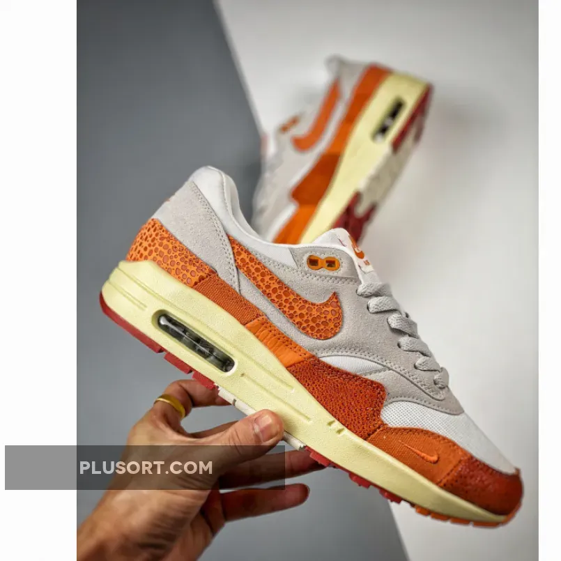 The 35-year-old Tinker Hatfield-designed Nike Air Max 1 brings back its “Master” collection from 2017. Presenting the Nike Air Max 1 Magma Orange. This Air Max 1 is all grey on the upper part of the shoe, from the mesh base to the suede overlays. The titular Magma Orange takes over starting with the signature profile safari print Swooshes on both the medial and lateral sides of the shoe. The colour continues on the bottom half of the shoe from the toe cap, the mudguard to the heel counter. These sections are a patchwork quilt of animal prints, including elephant and faux snake, and canvas. Branding on the tongue tab and the heel tab also take on Magma Orange.
