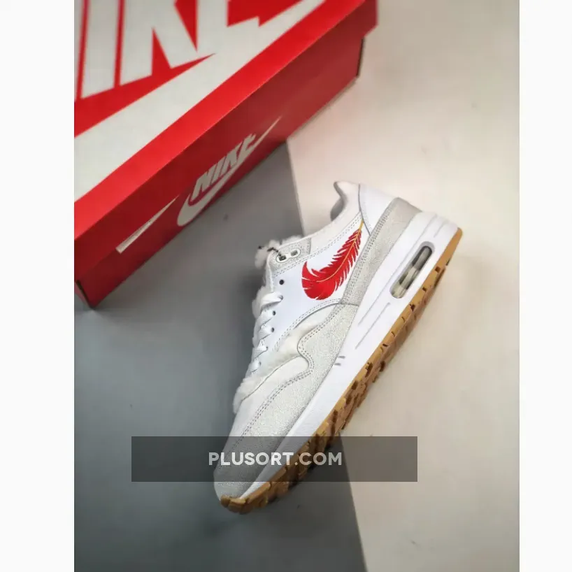 “I’m thoroughly impressed with my Nike Air Max 1 ‘The Bay’ purchase! The white leather is premium quality, and the grey suede overlays add a sleek touch. Love the fur-like tongue material & red feather Swoosh – it’s a stylish & unique combo. Comfortable too, perfect for daily wear.”
