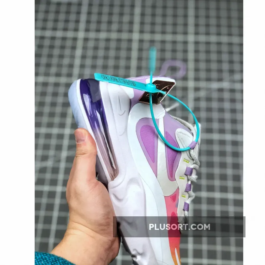 Previous commemorative sneaker releases from Nike have celebrated Chinese New Year with traditional red and gold outfits, but an upcoming Air Max 270 React sees the Swoosh welcome the Year of the Rat with pastel, sunset-like hues. At a glance, this iteration of the ultra-cushioned model seems like a Spring-ready pair for women, but closer inspection reveals subtle nods to the changing of the Chinese calendar. This same Chinese-inspired token appears on the left shoe’s heel – opposite the wheel of Swooshes found on the right shoe – in a silver embroidery. Continuing the celebration, white mudguards and overlays are decorated with a barely discernible pattern of leaves, stars, and other customary symbols. Orange and purple gradients round out this Chinese New Year release, taking over the toe box, as well as midfoot and heel panels, respectively while morphing into a pink/blue palette to take over visible Air unit at the heel.