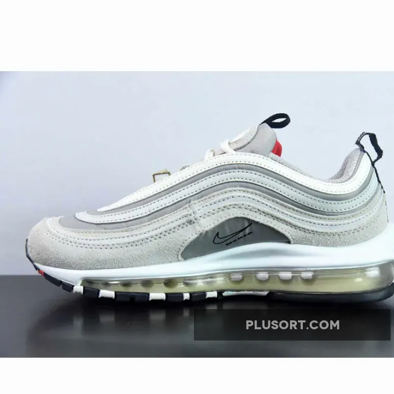 The Nike Air Max joins the brand’s “First Use” pack, celebrating 50 years of the Swoosh. The Christian Tesser designed-Nike Air Max 97 First Use White Black comes in neutrals with strategic pops of red.
