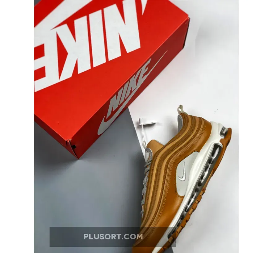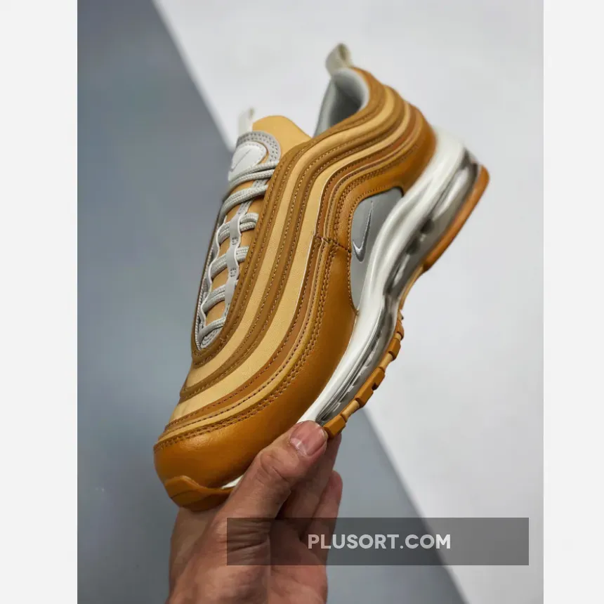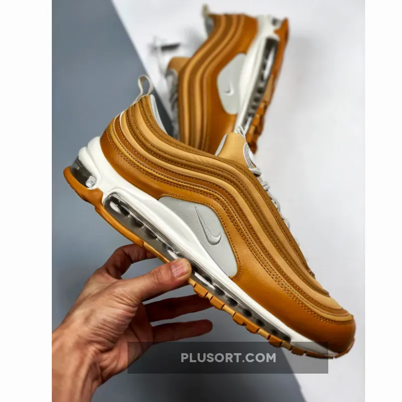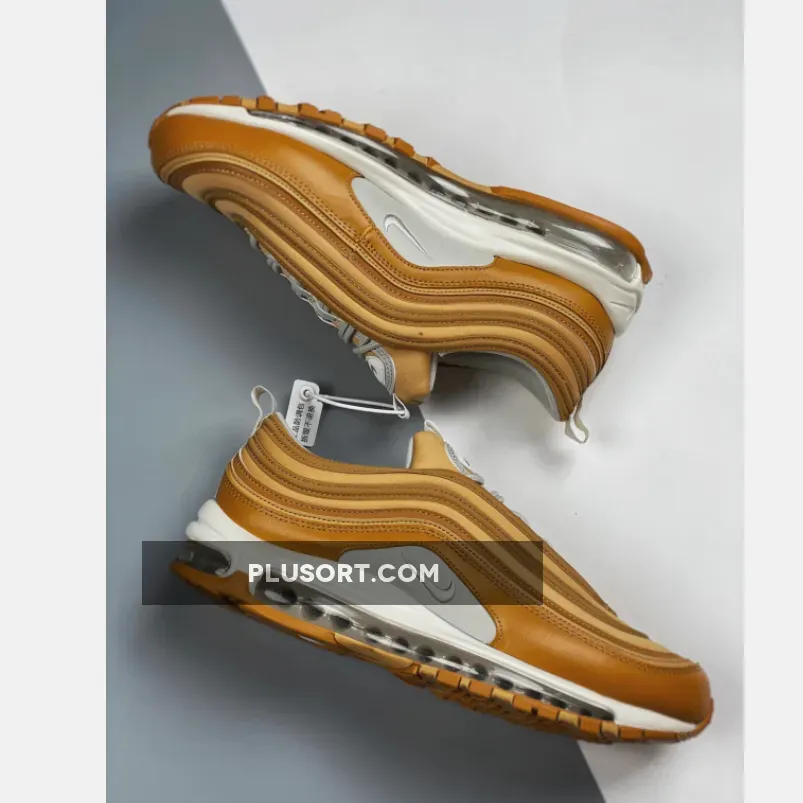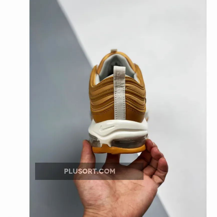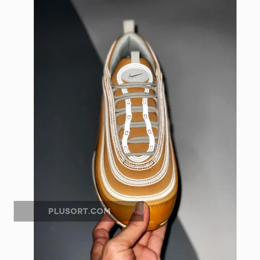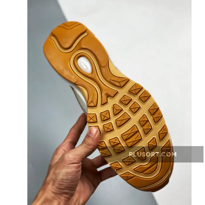 This offering of the Nike Air Max 97 features a Wheat base with White tumbled leather on the side panels.