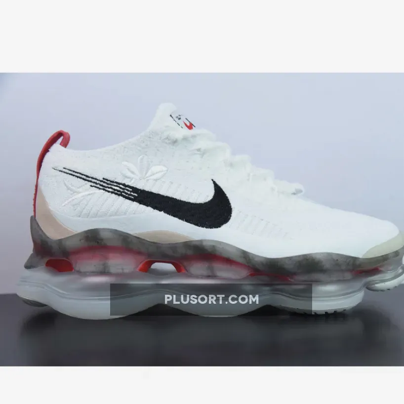 This offering of the Nike Air Max Scorpion features a White Flyknit upper with a Black stitched Swooshes and embroidered detailing on the sides. “Leap High, 2023, and Just Do It” are branded on the tongues with Red heel tabs and insoles atop its signature full-length Air Max sole unit. Pivoting to the sneaker’s eye-catching sole unit, a white and black marbled effect hits the uppermost layer while the full-length Air midsole is supported by a translucent rubber outsole. A red commonly used in CNY celebrations outfits the sockliner and heel tab while also accenting the midsole, completing the look alongside optional furry laces.