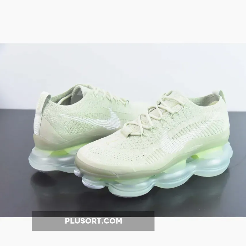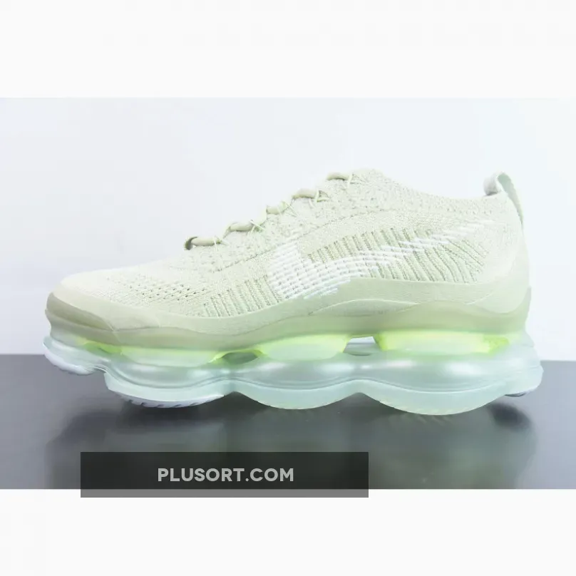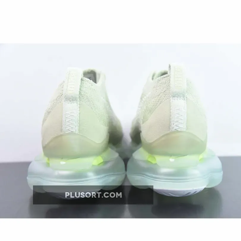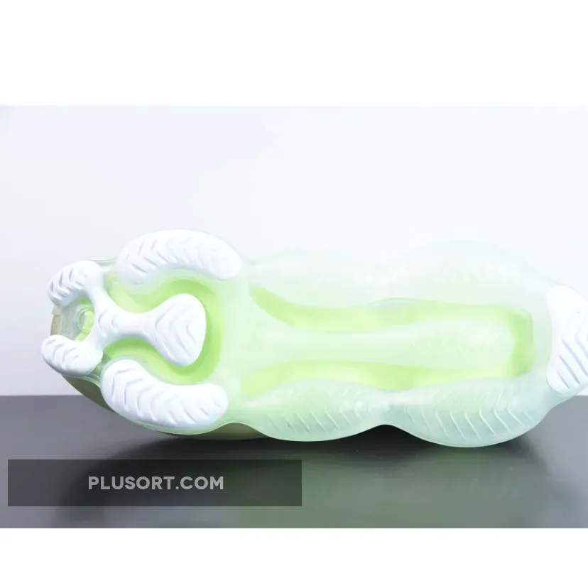 The shoe’s unique Flyknit chenille upper appears in a soft green hue that reaches from the toe cap to the heel tab. White branding elements provide contrast with its Swooshes on each side and dotted branding at the tongue and heel tabs. Tonal mini Swooshes also arrive in front of the lacing system and at the heel’s midsole. Its signature oversized sole unit is packed with Air technology in a translucent white presentation to complete the look as the brand describes it as using enhanced Air that offers “tomorrow’s comfort today.”