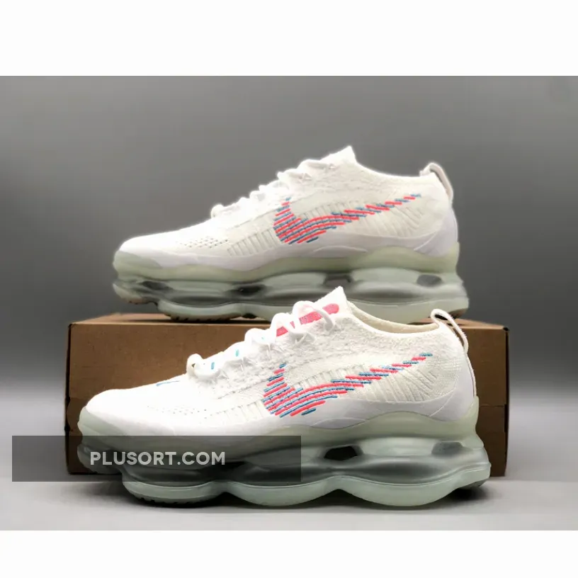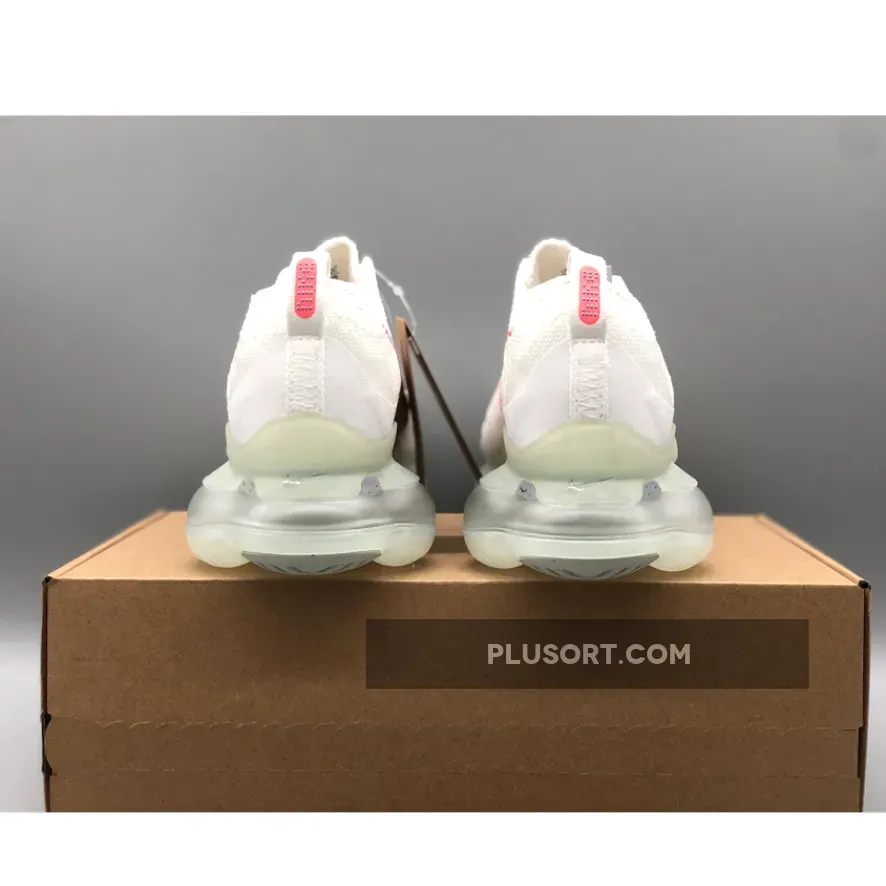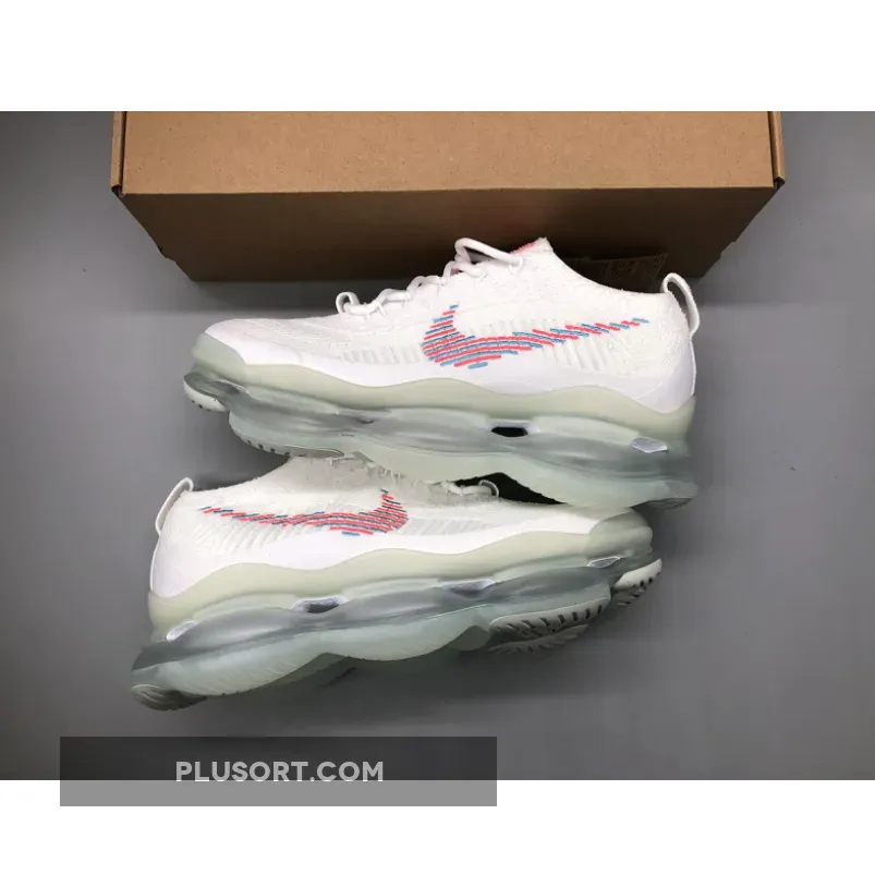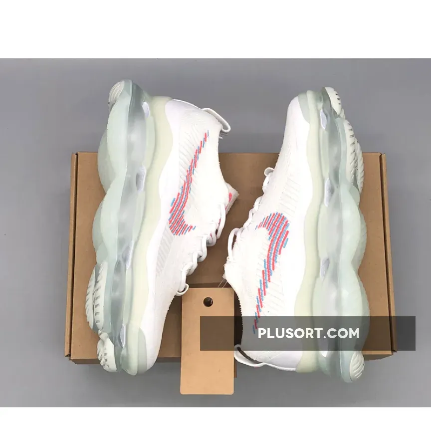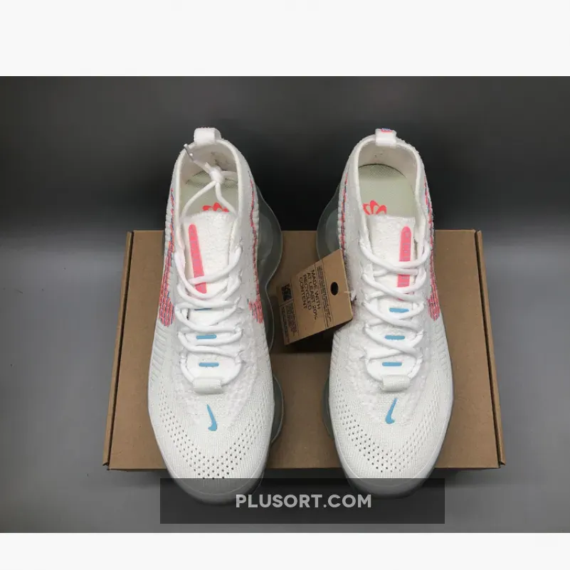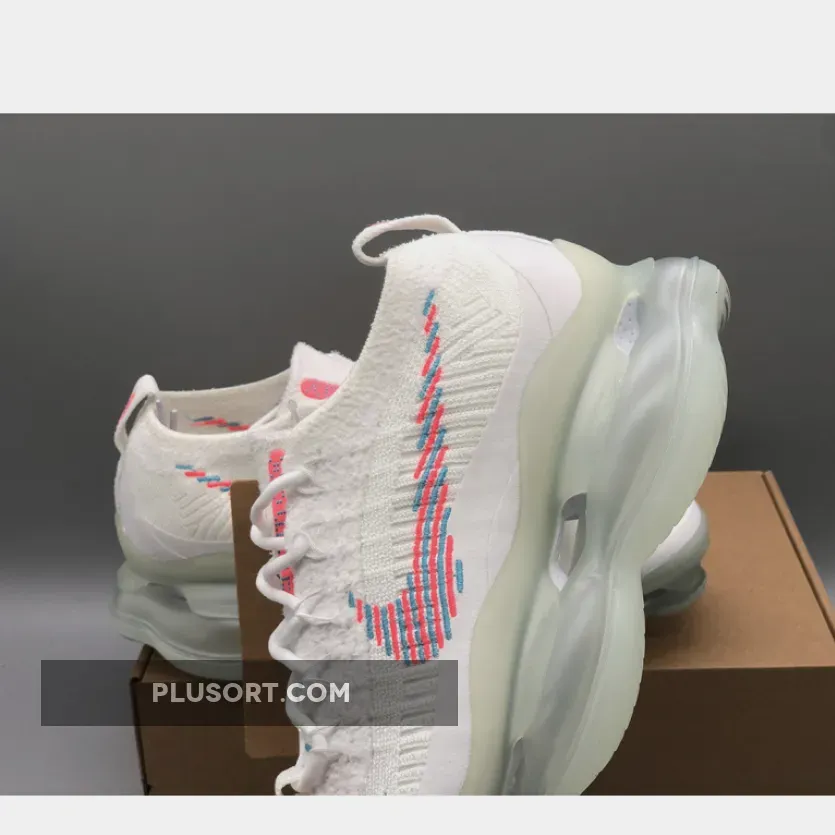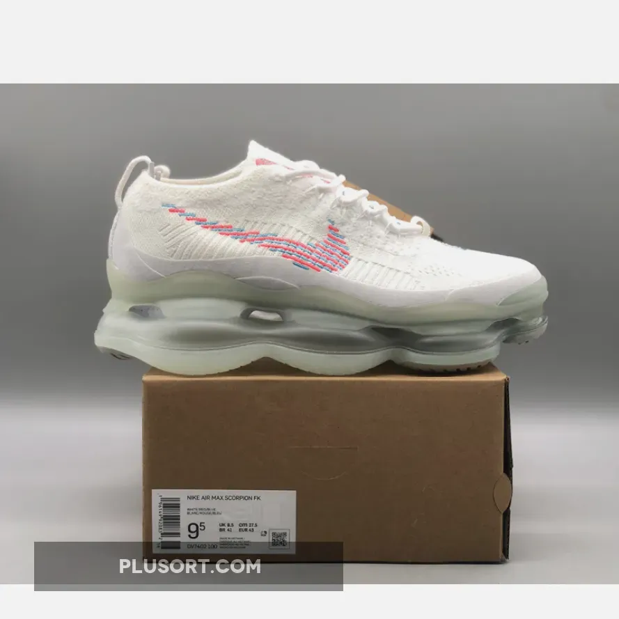 This Nike Air Max Scorpion comes dressed in a White, Lagoon Pulse, and Hot Punch color combination. A singular tone stretches atop the Flyknit and chenille construction of the upper with crisp white hues further enveloping the laces, pull tabs and color-matched full-length TPU mudguard.