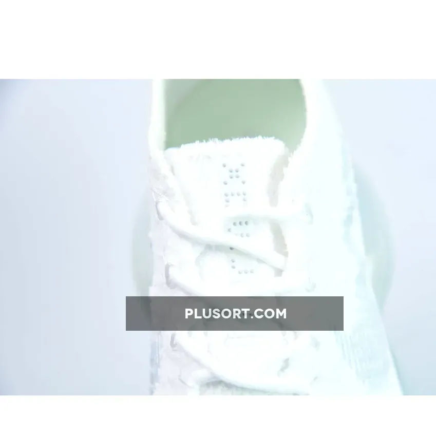 Arriving under the moniker “tomorrow’s comfort today,” the pairs are dressed in crisp white flyknit uppers with pre-distressed finishes around the collars which exhibit a snow-like effect.