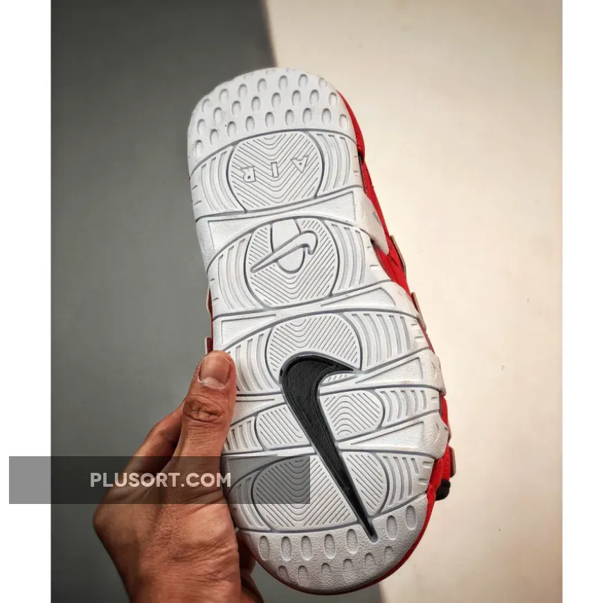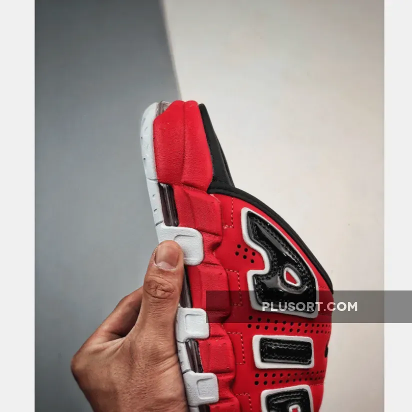 No mystery to the OG, this red/black/white colorway has been a regular sighting for the Air More Uptempo given its adjacent nature to classic Chicago Bulls colors.