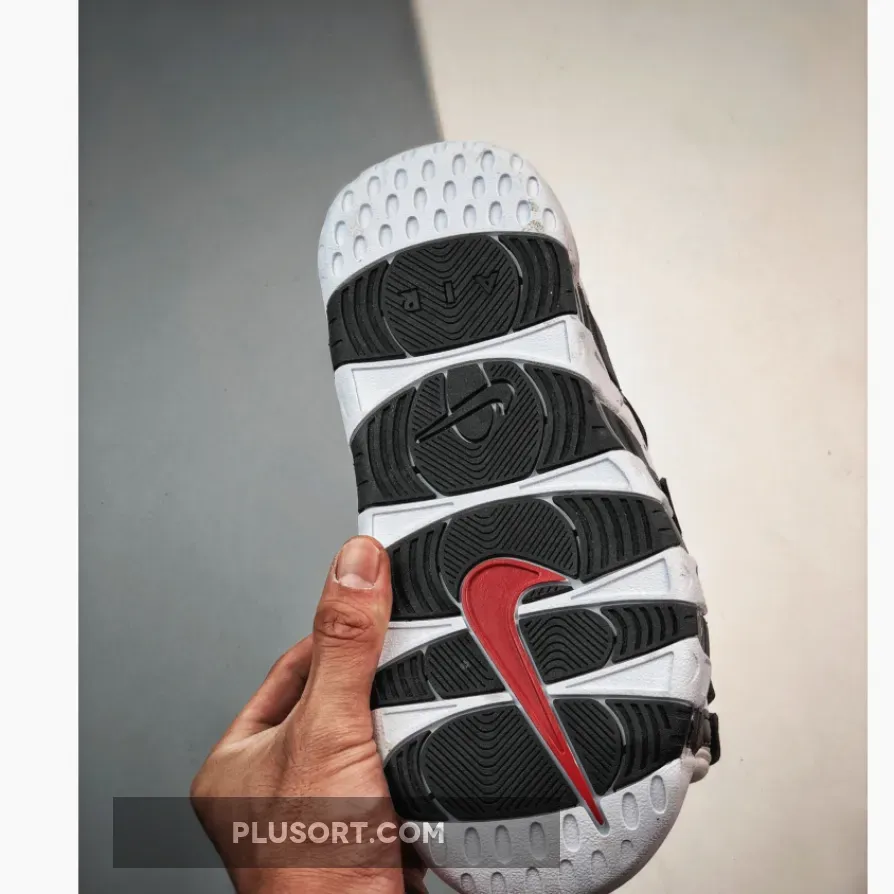 The upper layer of this Nike-designed offering translates the Air More Uptempo hoops shoe by borrowing its oversized, nubuck “AIR” letters and placing them on the lateral and medial walls in black. Beneath that is an angelic white base that features perforations in between each of the aforementioned letters while a pop of red is visible along the Swoosh logo that resides over the bridge of the foot to form a palette that Scottie Pippen would likely appreciate. Footbeds are debossed with a circular Nike logo and come formed with dotted textures that run their length. Black and white stripes coupled with reversed Swoosh insignias on the outsoles mimic the classic hoops-turned-lifestyle product.