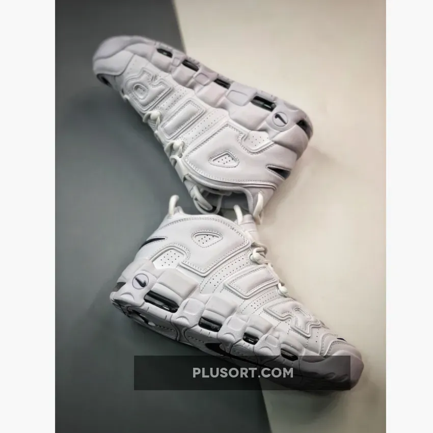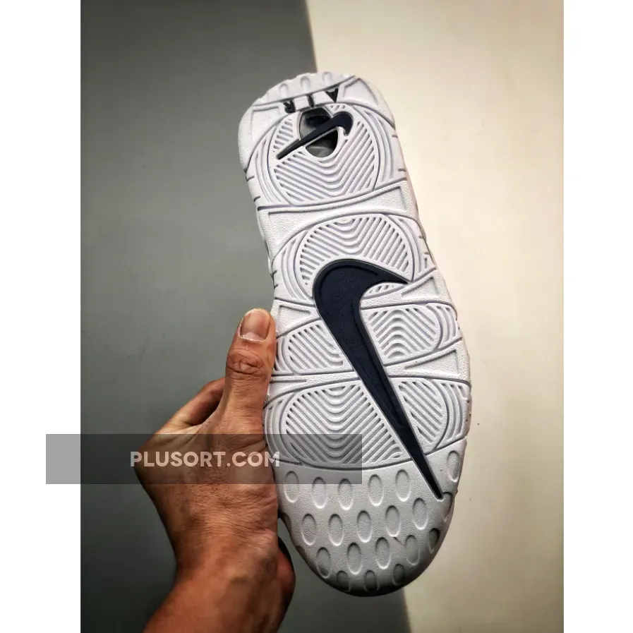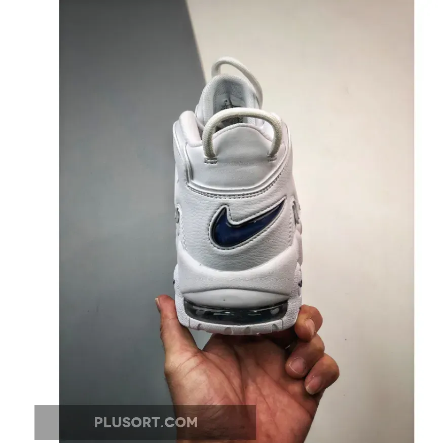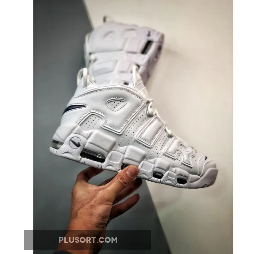 While the Nike Air More Uptempo silhouette has always had playful and colourful releases, it now has a new, clean variant with a minimalist approach. Introducing the Nike Air More Uptempo White Navy. The colourless design is interrupted by Midnight Navy accents, the mini Swooshes on the toe box, the raised Swoosh badges on the lateral heel, and the jelly Swoosh on the heel tab.