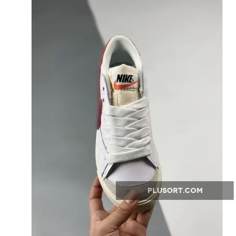 A stylish wardrobe staple with a fun oversized twist, the Nike Blazer, continues to roll out stunning new colourways. A case in point is the Nike Blazer Low Jumbo White Red. The Swoosh on the lateral side spills out onto the midsole, giving the shoe a playful, quirky feel. The suede heel tab with black Nike text branding is in a contrasting bright orange-red hue. A furry light grey toe cap and the exposed foam tongue add more touches of character.