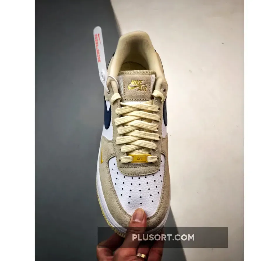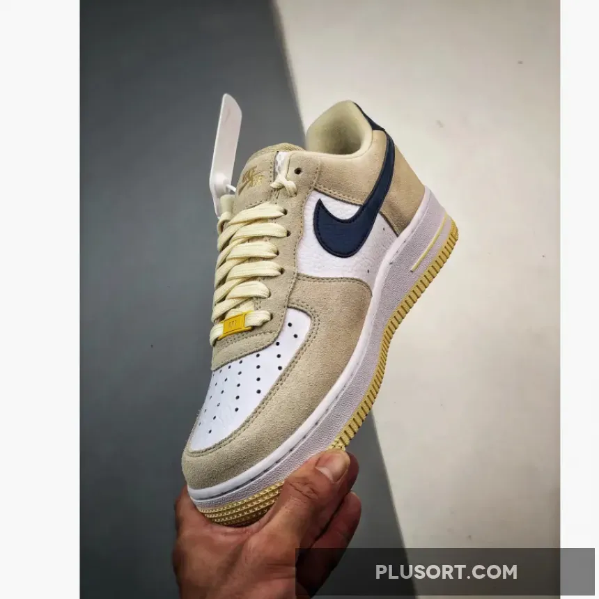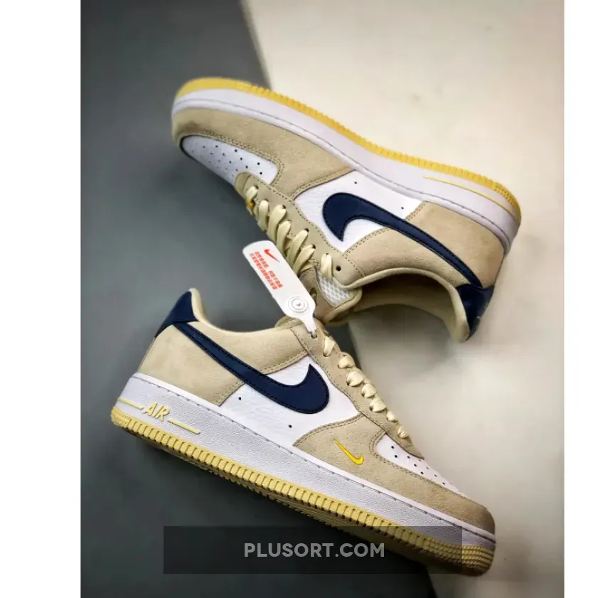 Fresh new colours for the 41-year-old sneaker icon. Check out the premium upper material of this Nike Air Force 1 Low “Tan Navy Gold”.The Nike Air Force 1 is never scarce when it comes to colourways. It’s one of the reasons why this 80s basketball shoe became a fan-favourite sneaker outside the court. Designed by Bruce Kilgore, the 1982-born AF1 is the first Nike basketball shoe to use the patented Nike Air cushioning. Embedded within the rubber cupsole, Nike Air was Nike’s greatest cushioning system during that time. The Nike Air Force 1 first came as a High, with an ankle strap for lockdown. A Low version soon followed, and the Mid arrived in the 90s. This colourway features a white pebbled leather base with tan suede overlays. Navy blue accents cover the pebbled leather Swoosh and heel panel. Yellow colours comprise the embroidered Swoosh near the forefoot, lace dubrae, and debossed Nike labels on the tongue and heel. Jersey mesh makes up the tongue for more ventilation.