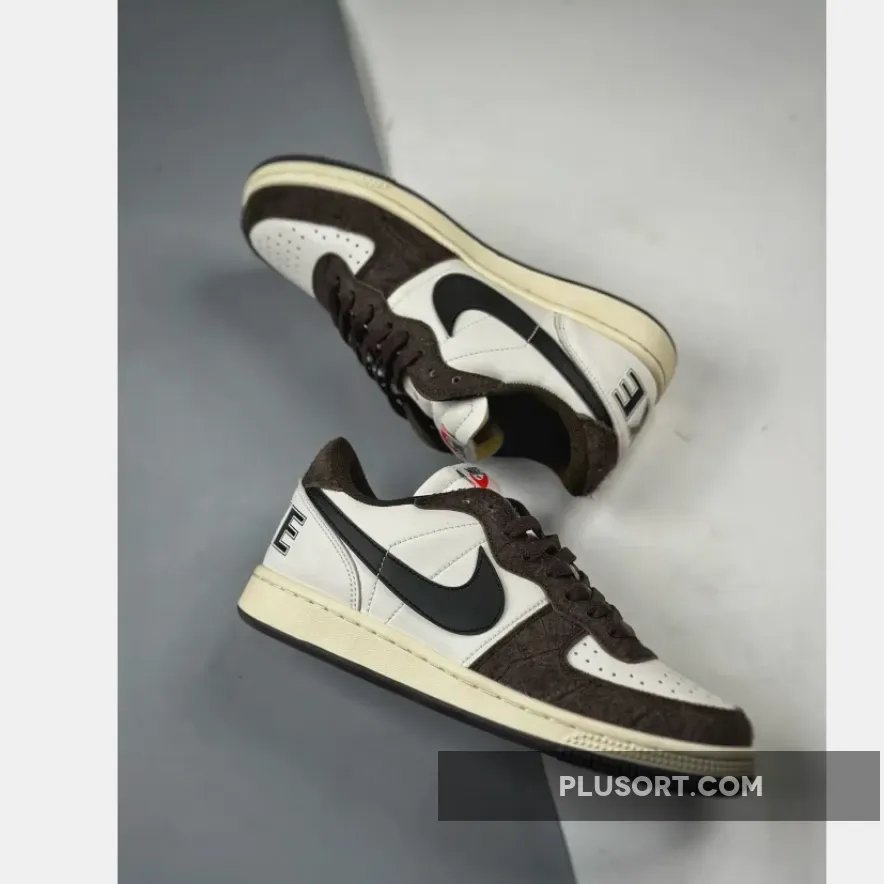 Solid color scheme and the croc texture elevates the Terminator’s classic design. Comfy, breathable materials & excellent traction. Perfect for everyday wear! #NikeTerminatorLow #BrownCroc