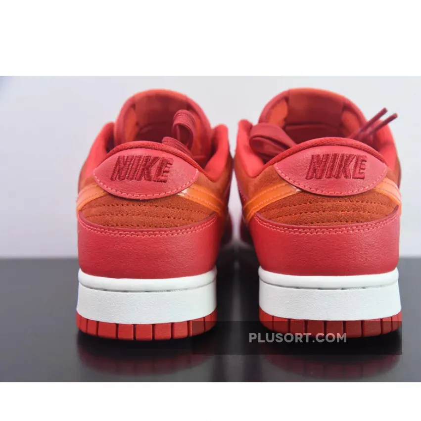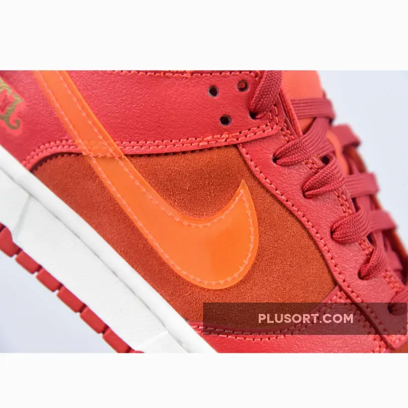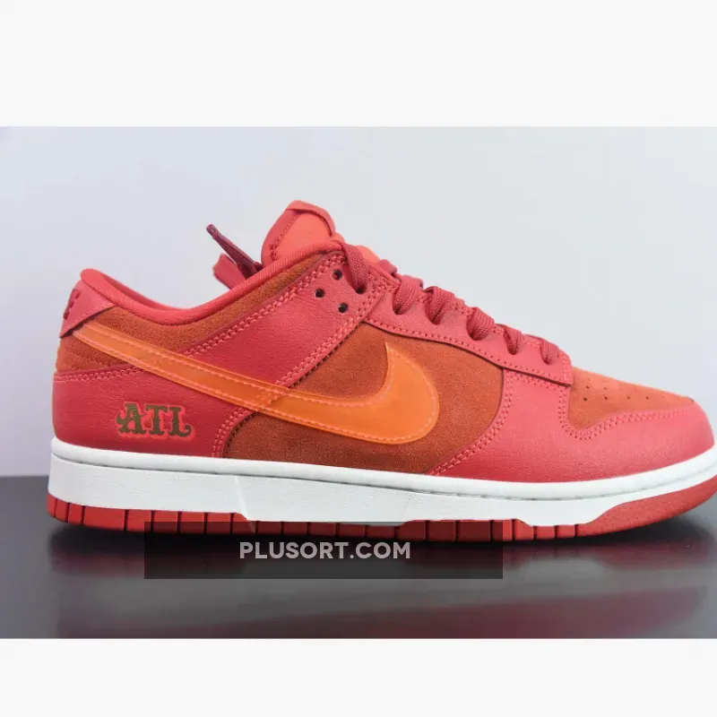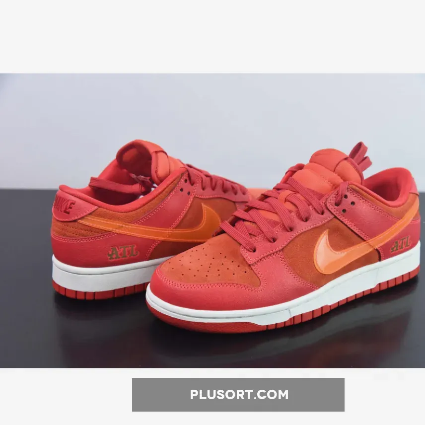 This offering of the Nike Dunk Low sports a Crimson Red base constructed in a mix of suede and leather materials with mesh tongues and lining. The Nike Dunk Low is constructed with a mix of leather and suede materials along with mesh tongues and lining. The suede highlights the entire upper and the overlays, while the Swoosh features an orange tint and is made of patent leather. Golden “ATL” branding luxuriously accents the heel counters and insoles, completing the design atop white and red sole units.
