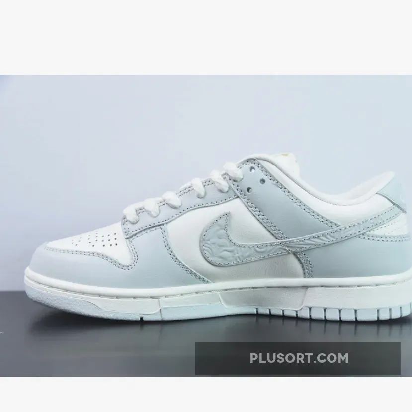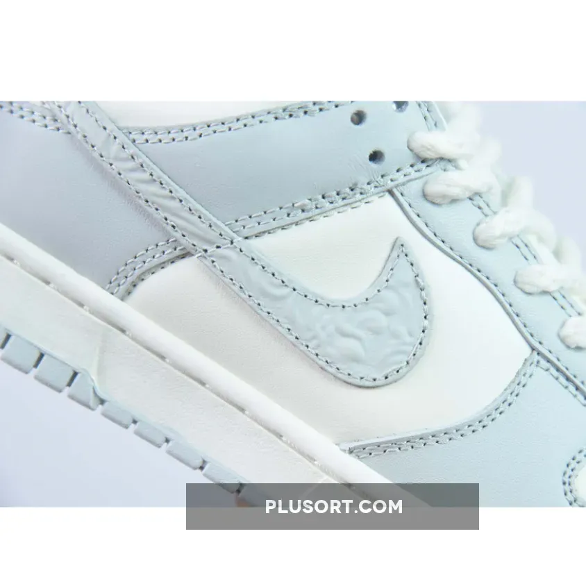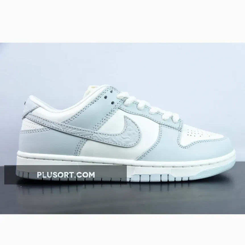 The laces are the most obvious change, with their thick rope profile similar to the set we saw on the Premium Goods x Nike Air Force 1 Low “The Sophia”. Then your eyes drop onto the Swoosh, where a paisley textured finish has been applied to the logo, feeding into the subtle but intricate motif that surrounds the design. On the heel tab, you can find a script Nike font debossed into the panel with a chrome dot applied to the “i”, a detail we first saw on the Air Force 1 Low Chrome Swoosh “Sail” release. Another detail adopted from the AF1 Chrome Swoosh edition is on the toe box, where a decorative pattern replaces the regular perforations that Nike normally issues on the Dunk.