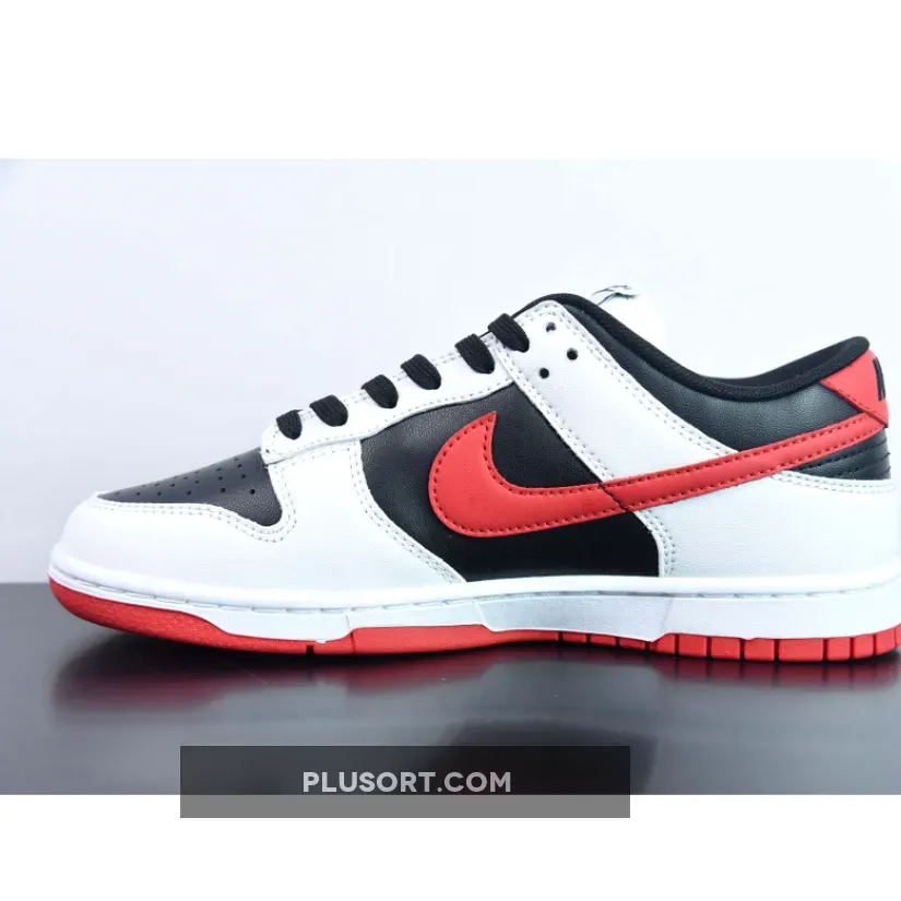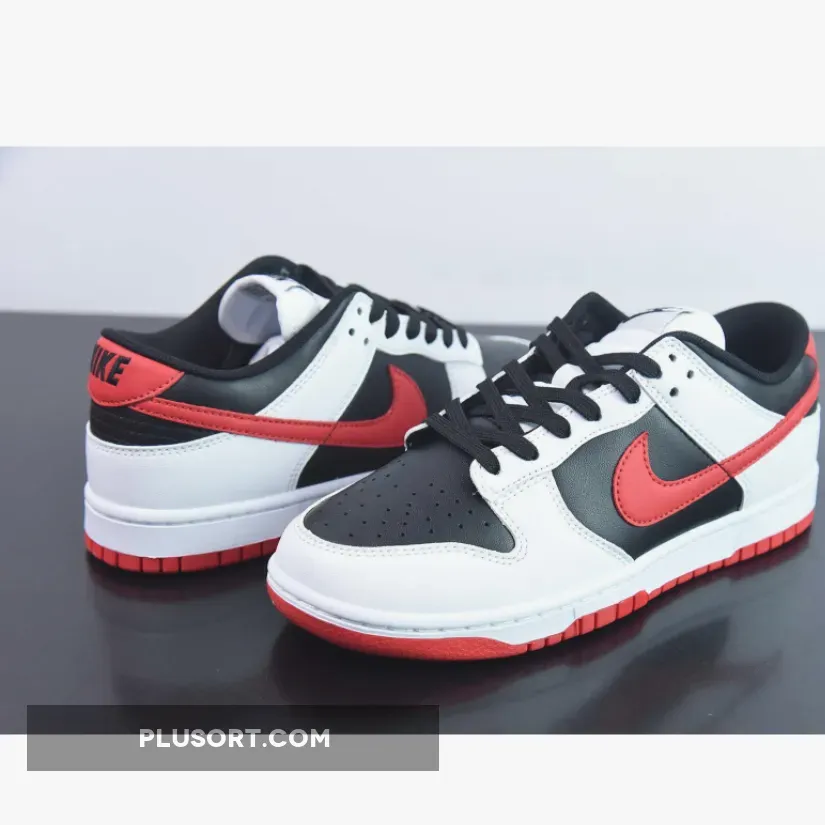 This Nike Dunk Low “Reverse Red Panda”, features a tri-tone color palette mixing in black, white and red elements throughout its uppers. Largely taking inspiration from the “Reverse Panda”, this new colorway of the Dunk Low comes dressed in a Black leather base contrasted by the White hits on the leather overlays and tongue tags.