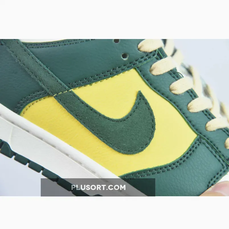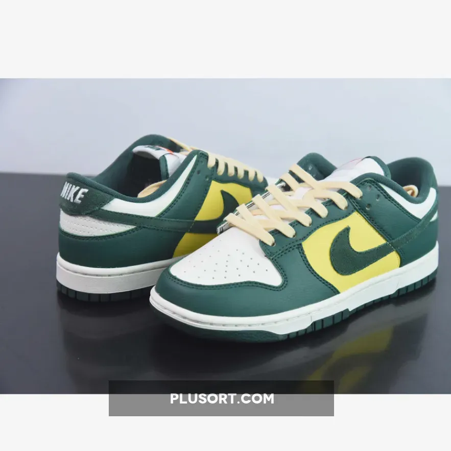 This Nike Dunk Low features a Sail, Opti Yellow, Picante Red, and Noble Green color combination. Constructed with tumbled leather and shaggy suede Swoosh logos and heels. Highlighting the pair, we have ‘Athletic Company’ branding on the insoles. Green then lands on the overlays, Sail fills in the tongue, ankle, toe, and midsole, with Yellow on the panels. Finishing the look is a Green rubber outsole.