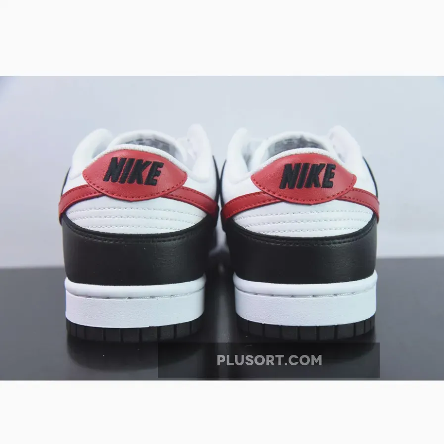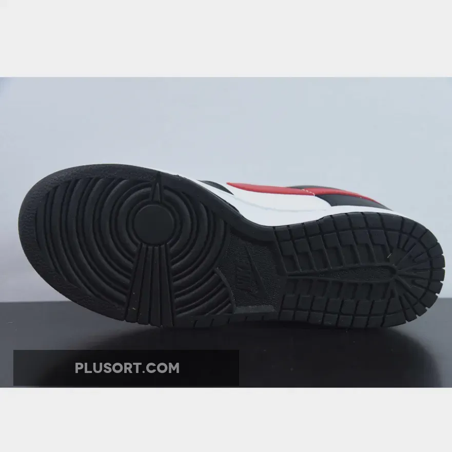 The 37-year-old Peter Moore-designed Nike Dunk has a new release with a classic tri-colour touch. Meet the Nike Dunk Low White Black Red. This low-cut Dunk has a white tumbled leather base with starkly contrasted overlays in black smooth leather on the toe cap, mudguard, eye stay panel and foxing.