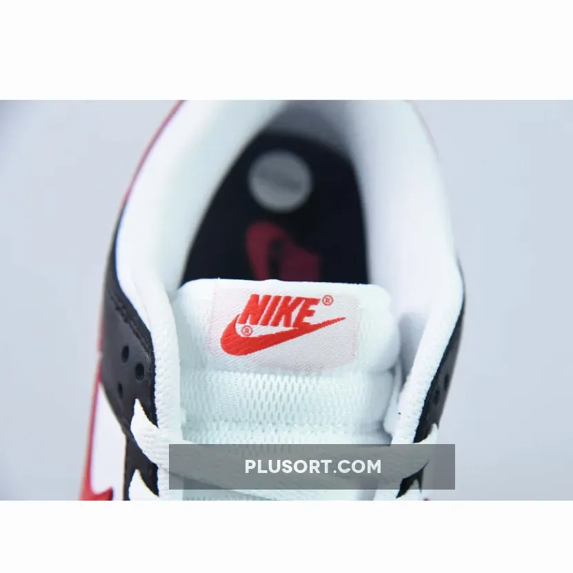 It’s here where the pair begins to deviate from the two-tone “Panda” scheme, with striking red flashes provided by Swoosh and heel overlays, as well as branding at the tongue. This same red repeats on the heel tabs with Nike text branding embroidered in black. Classic red Nike branding stands out on the white tongue tab and the black insole. Finally, a white midsole and black rubber outsole solidifies the profile nicely.