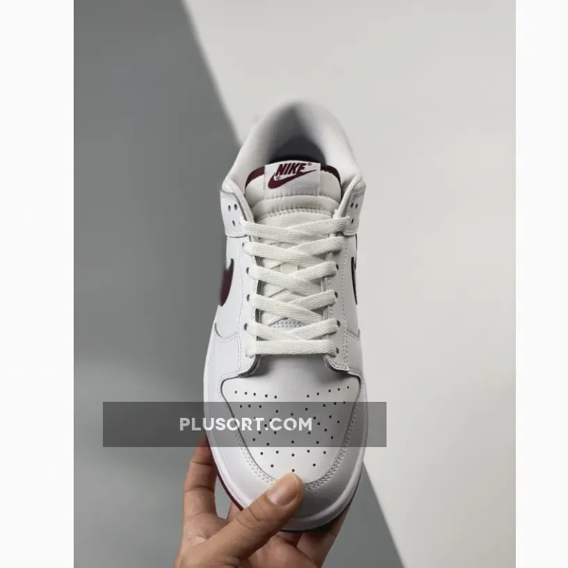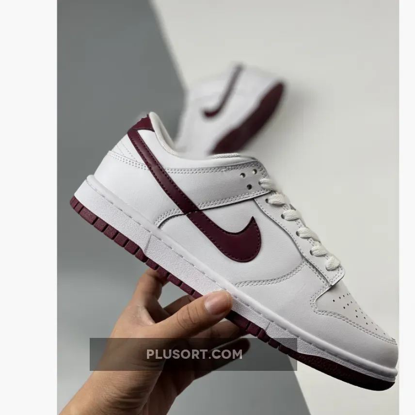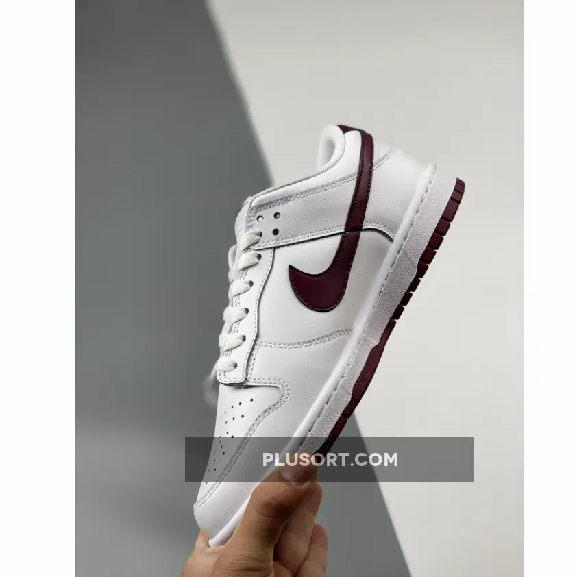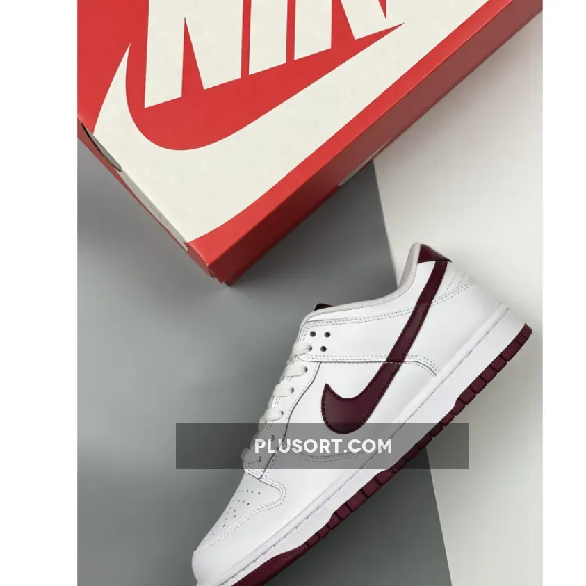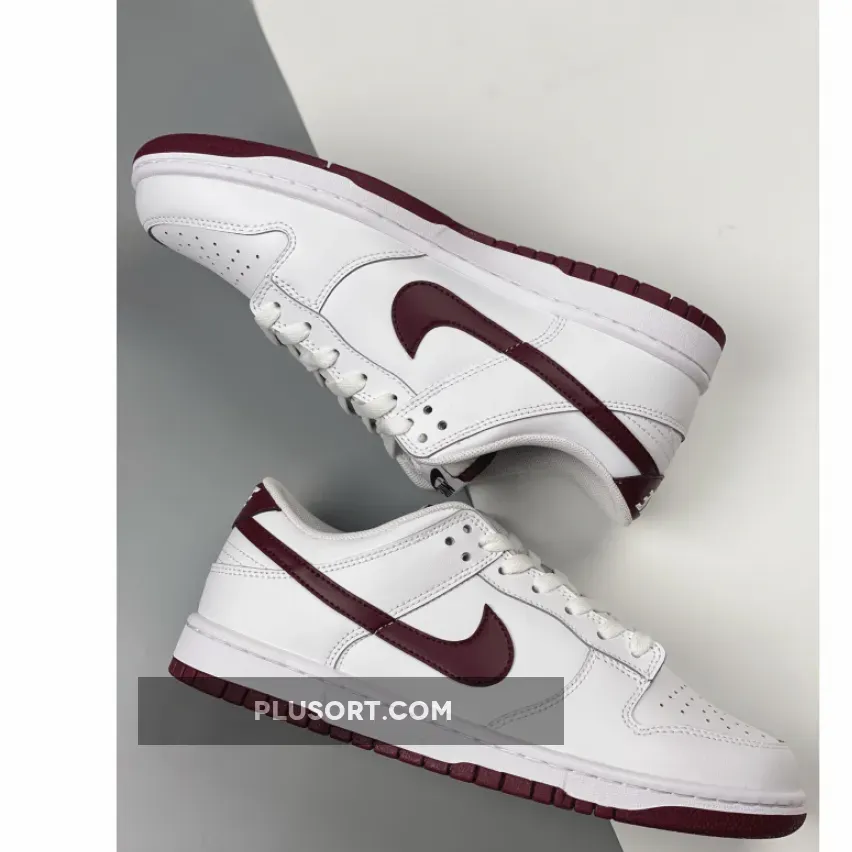 Channel the classic vibes with the Nike Dunk Low White Night Maroon. This casual, versatile shoe features a simple look that will pair well with most outfits. It begins with a traditional smooth white leather upper which includes the perforated toe, quarters, and rear as well as the leather overlays.