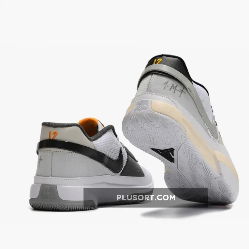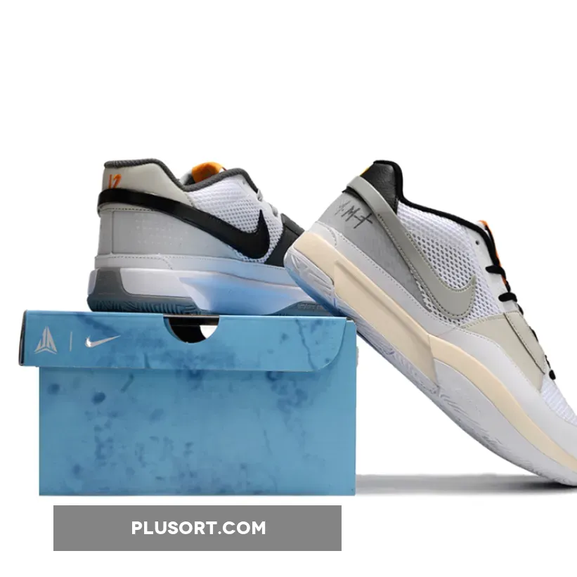 Further elevating the pair are the orange tongue labels with signature “JA” branding and “12” embroidered into the heels. Rounding out the final design cues are the mismatched Zoom cushioned midsole and rubber outsole
