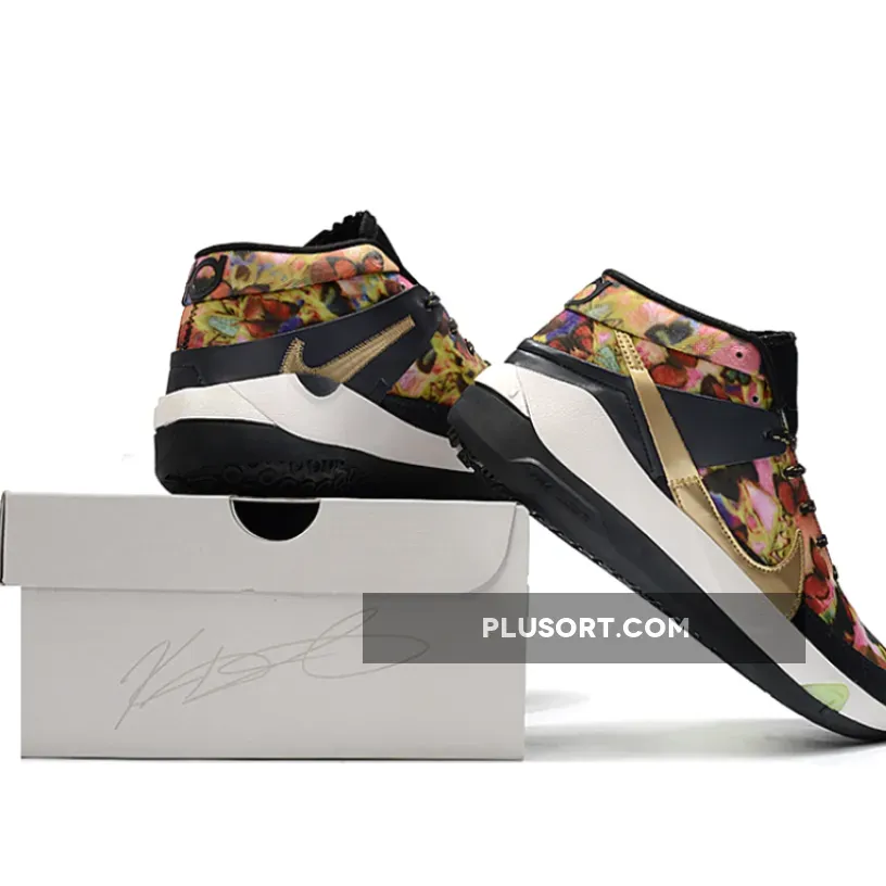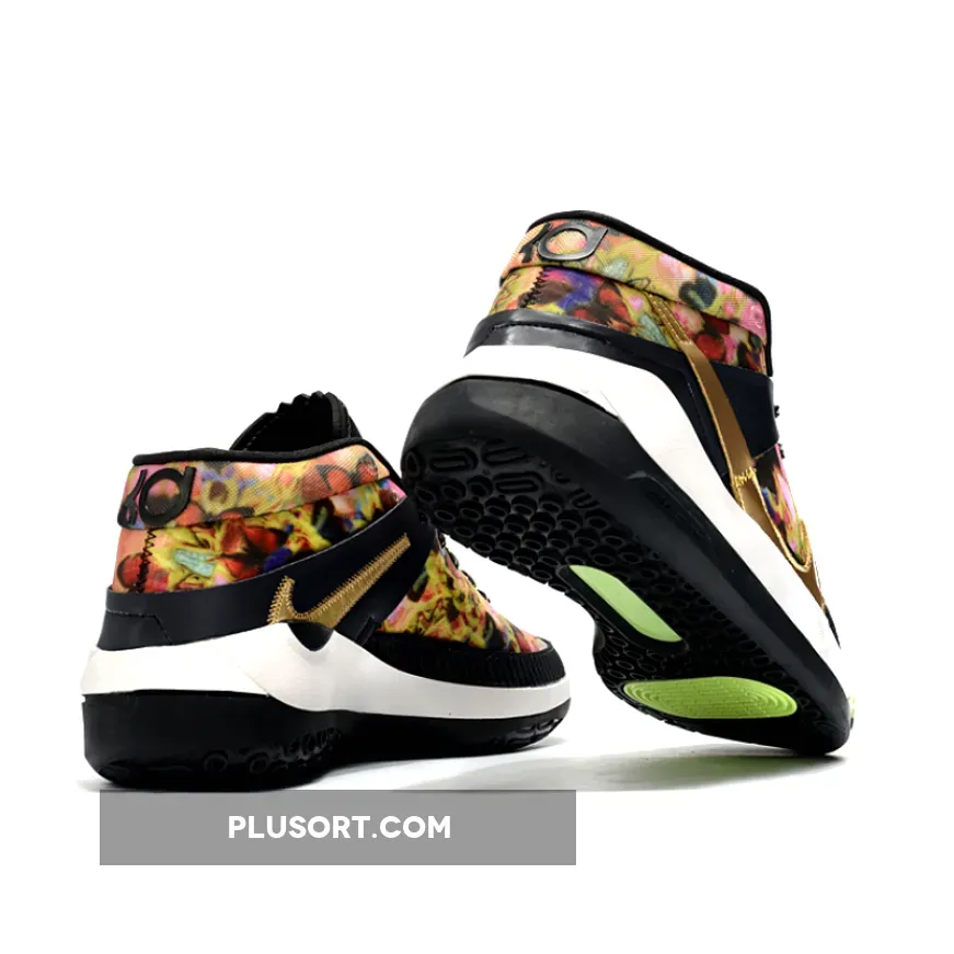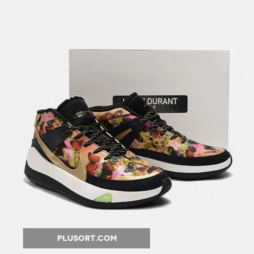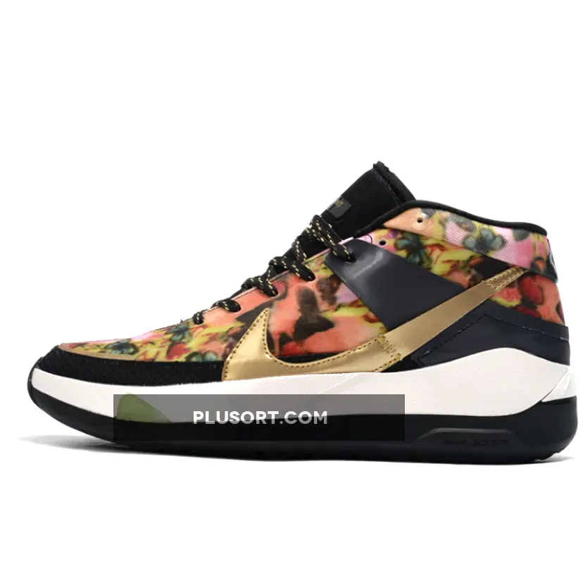 This Nike KD 13 is inspired by the pump-up playlist that activates his clutch mindset, the KD13 ‘Hype’ gives a nod to hip-hop culture and fashion with gold chain and flower graphics on the upper.