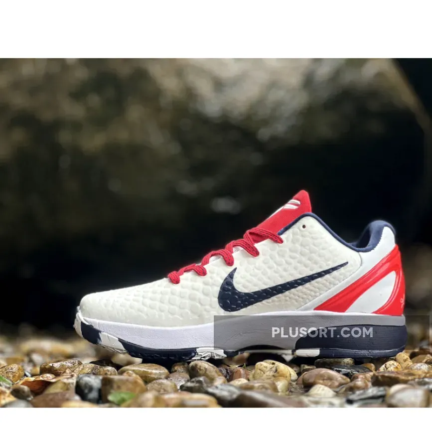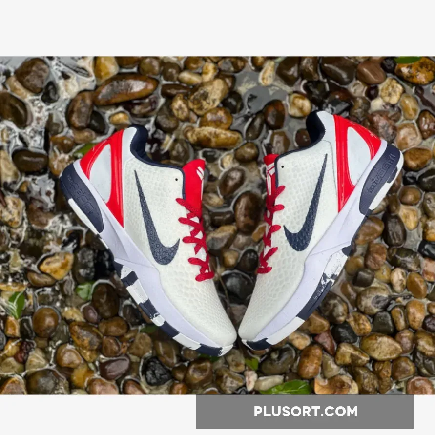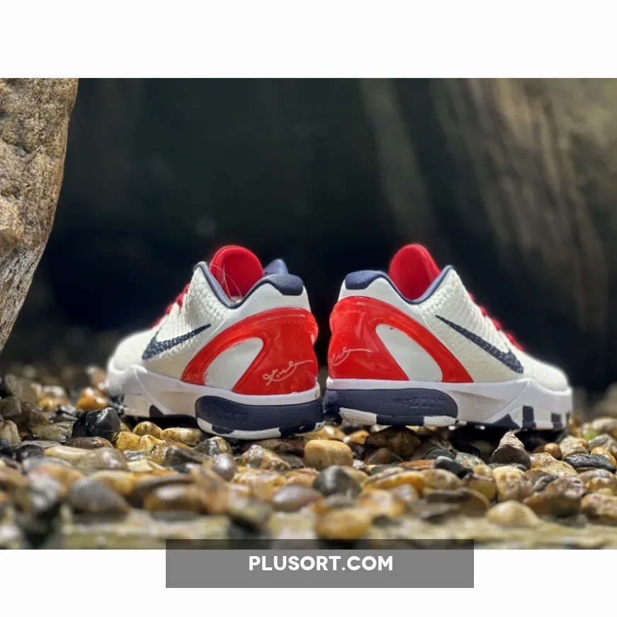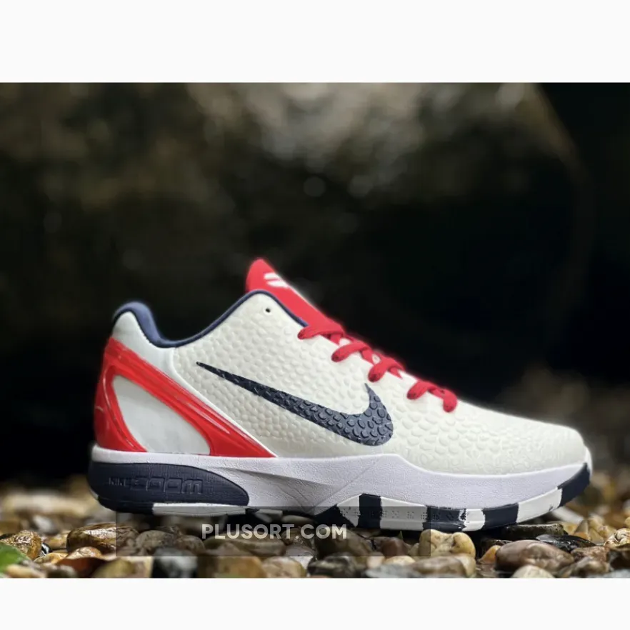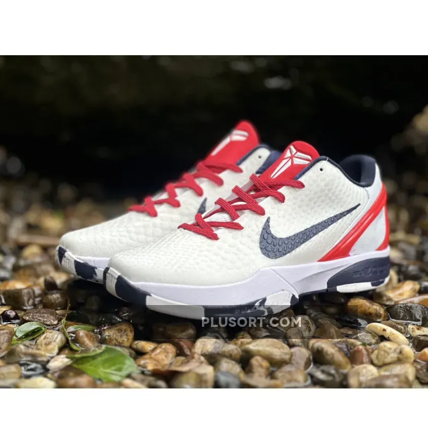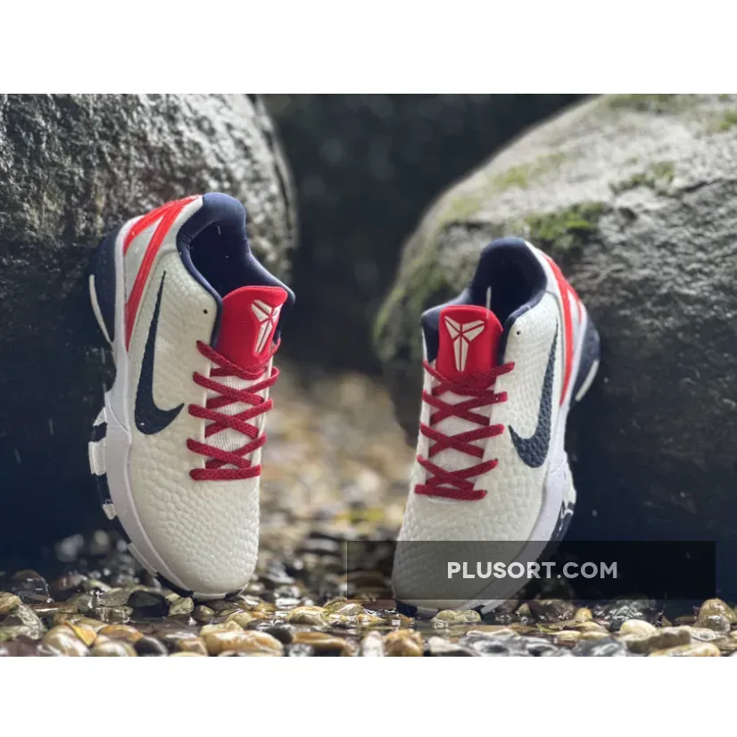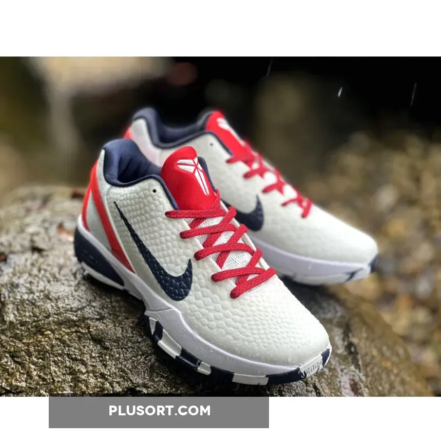 The first pair’s upper is predominantly decked in White with Navy Blue accents on the Swooshes, the sockliner, with both working in tandem over the sole unit. The second contrasts this with a Navy Blue base layer with White accents on the Kobe logo, Swooshes, midsole, and heel overlay. Both pairs are imbued with with Red accents to complete the trifecta of colors that form the Stars and Stripes. They’re finished off with a polished White midsole and an eye-catching Navy and Red marbleized outsole.