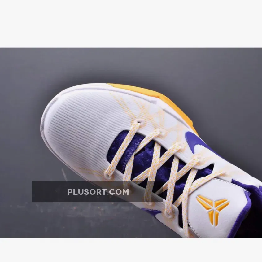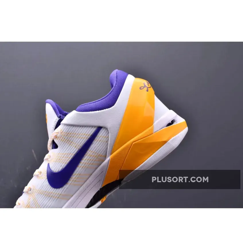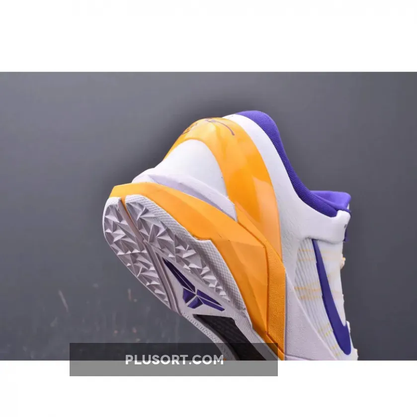 Kobe Bryant’s seventh signature shoe gets outfitted with a Los Angeles Lakers color palette, sporting a white Engineered Mesh upper with Del Sol Flywire cables. The heel counter and Zoom Air midsole also sport Del Sol, while Concord on the Swoosh and inner lining complete the team look.