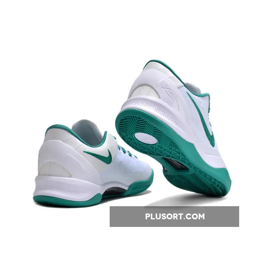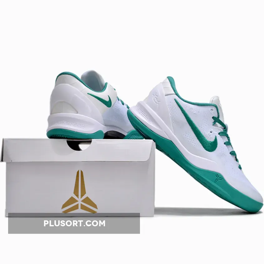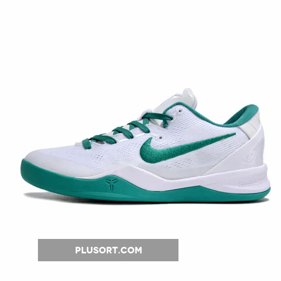 This Nike Kobe 8 Protro comes dressed in a White and Radiant Emerald color combination. The former highlights the profile Swooshes, interior, laces, and rubber outsole; while the latter forms the entirety of the lightweight, knitted base layer. Moreover, Kobe’s insignia and autograph can be found on the heel counter and insoles, respectively.