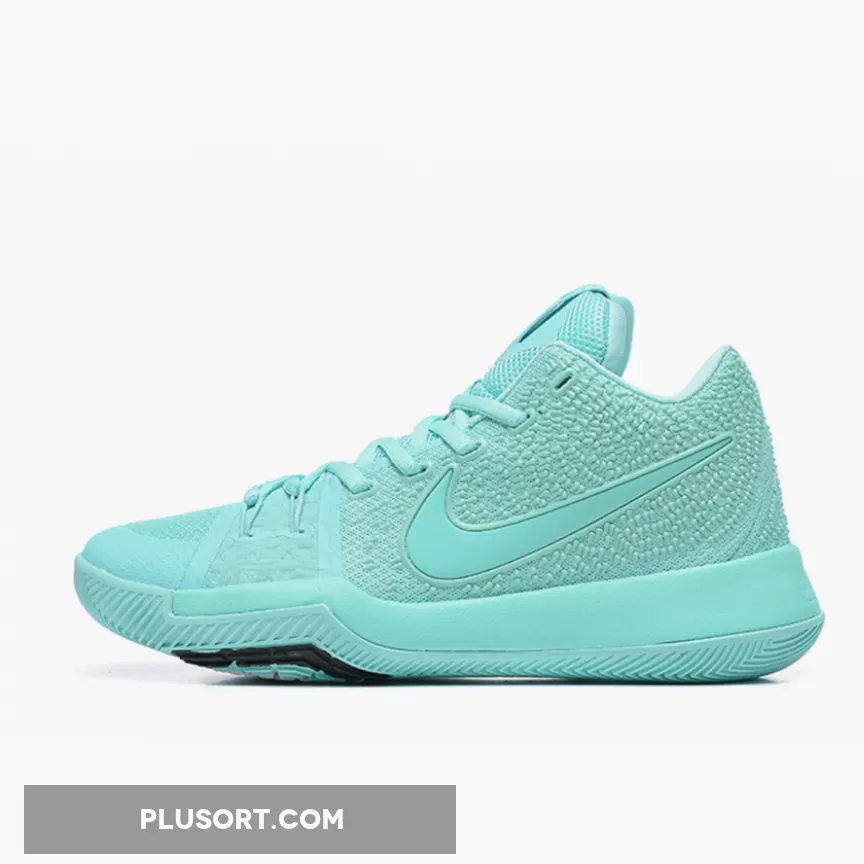 This Nike Kyrie 3 comes fully dressed in Aqua with matching tonal branding on the tongues and Nike Swoosh logos. Black detailing is seen on the rubber outsoles, along with having an extra set of White laces.