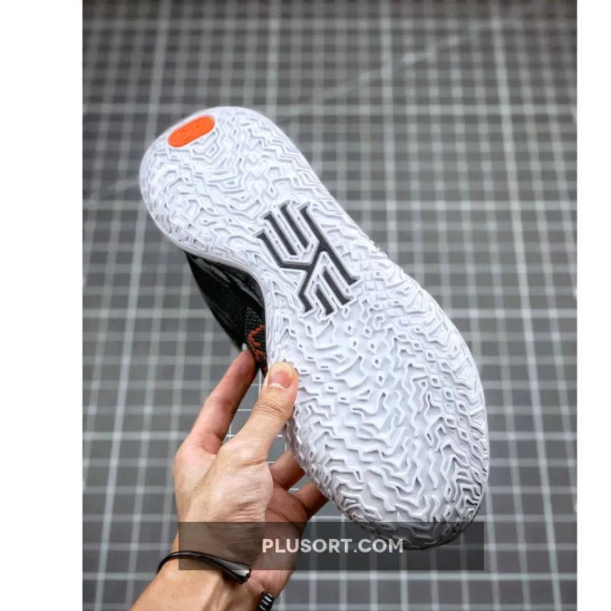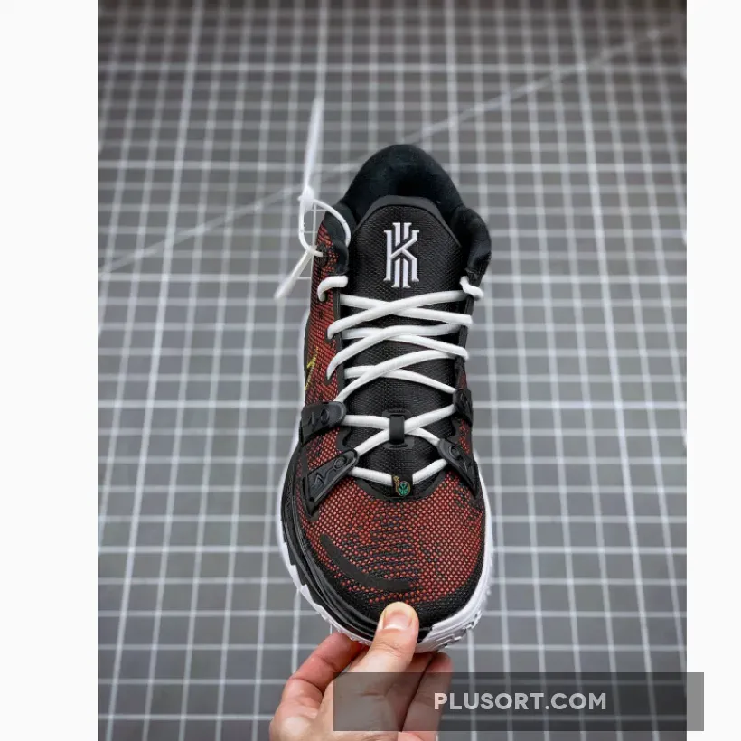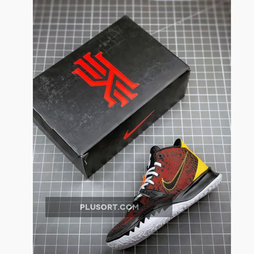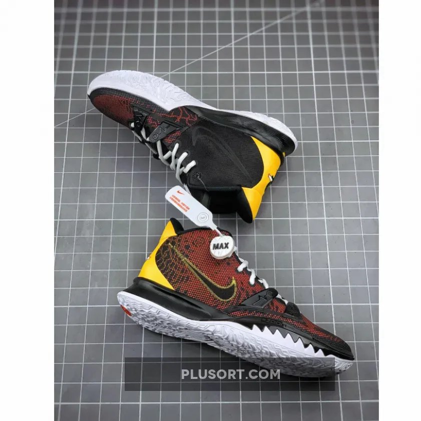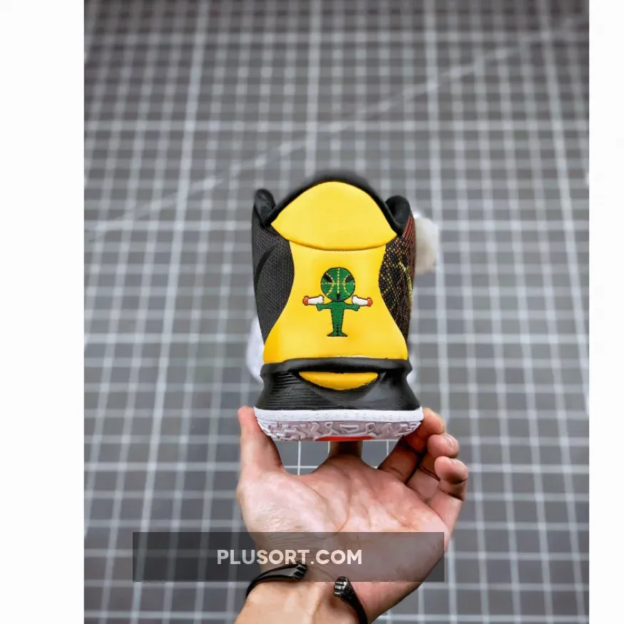 This Kyrie 7 “Raygun” features a textile upper in a mix of Black and Orange with Yellow stitched Swooshes on the sides. Other details includes a the “Raygun” mascot above the toe and Yellow heel.