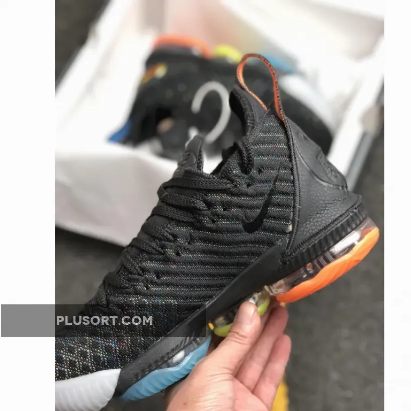 “I’m thoroughly impressed with the Nike LeBron 16 ‘I Promise’! The black Battleknit upper is sleek and comfy, while the multi-color underlay adds a pop of flair. The family-inspired outsole is a great touch, too. Quality-wise, this shoe is top-notch – durable, well-crafted, and perfect for both on-court play and everyday wear. 5/5 stars!”