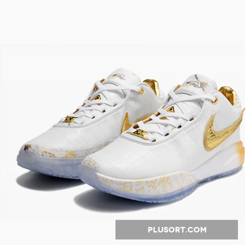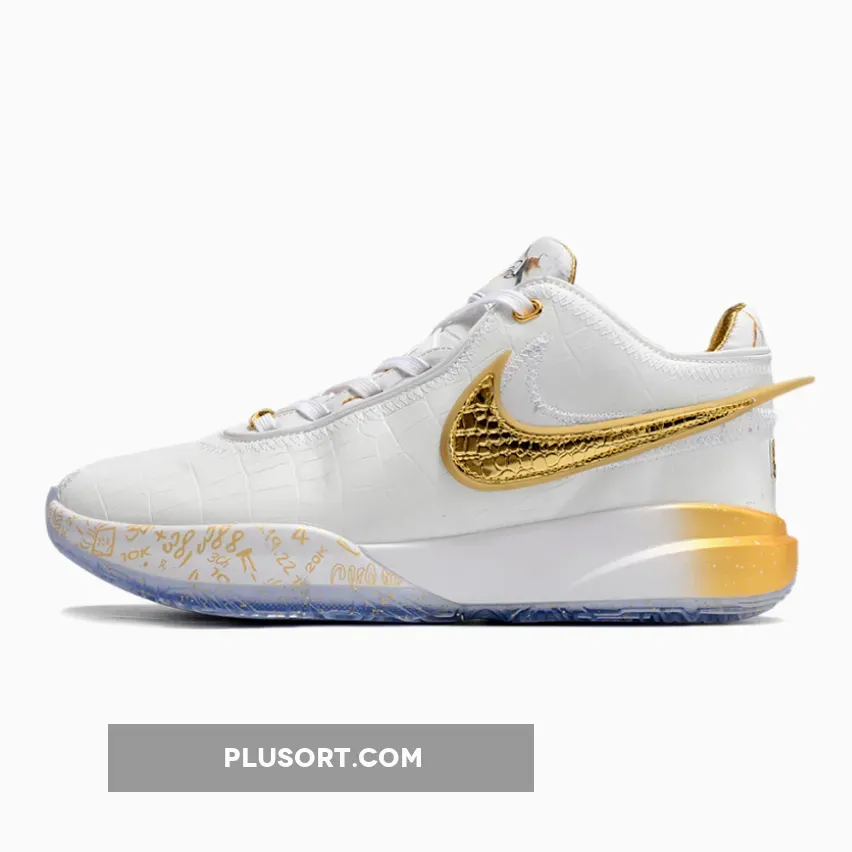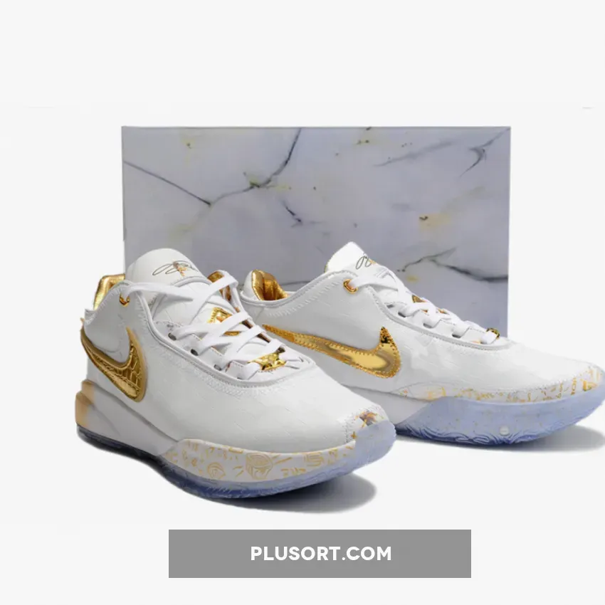 Dubbed, “The Moment”, this offering of the Nike LeBron 20 was crafted with the highest quality of materials featuring a White croc upper with Metallic Gold and marble detailing throughout. Base layers are predominantly engineered with luxe white crocodile skin and is accented by more crocodile textures atop the Swooshes and interior liners that shimmer with metallic gold finishes. Carbon fiber midfoot shanks split their decor between white-to-gold gradients in the heels and a collection of images and numbers that reference James’ illustrious career. The latter features championship ring icons, his signature “L23” logo and various dates that mark his wealth of point milestones. If you look underneath the kicks, the see-through outsoles house “+38,388” hits to indicate that while he officially holds the throne, his journey is far from over as he’s got a handful of years in the league left to play. Additionally, the kicks were packaged in a special white marble box that is debossed with his signature crown logo.