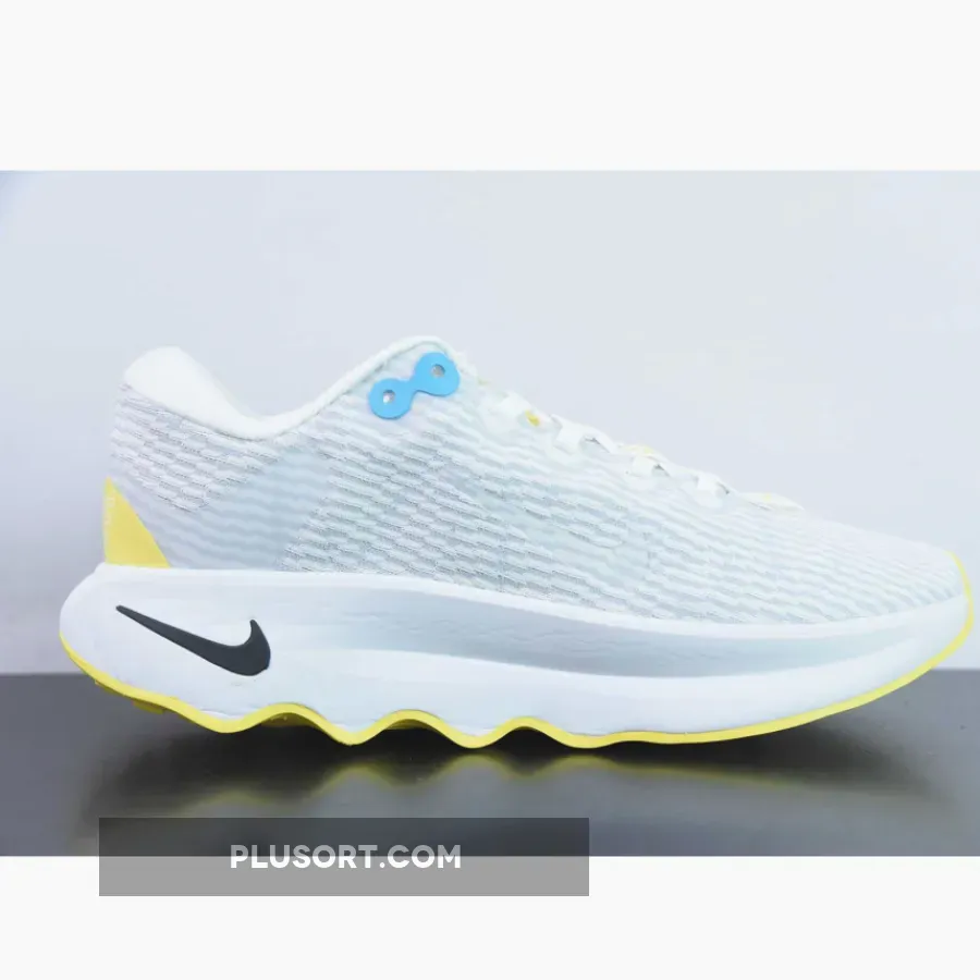 the Nike Motiva sits atop a full-length Cushlon 3.0 midsole. The chunky cushioning solution helps soften impact as feet hit the ground during workouts or errands. ComfortGroove bumps on the outsole also form part of the Motiva’s equation, providing some energy return to help legs feeling less fatigued. Other comfort-driven details include a soft foam waterfall collar and internal half-bootie.