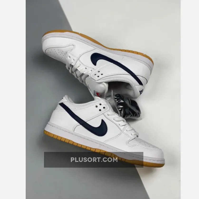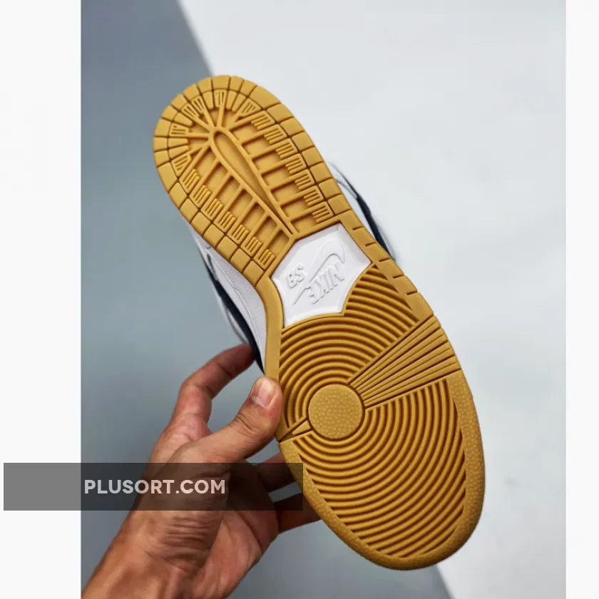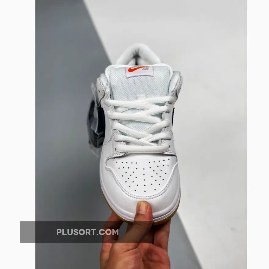 This Nike SB Dunk Low features a White leather upper paired with Black detailing on the tongues, heels and Swoosh logos.
