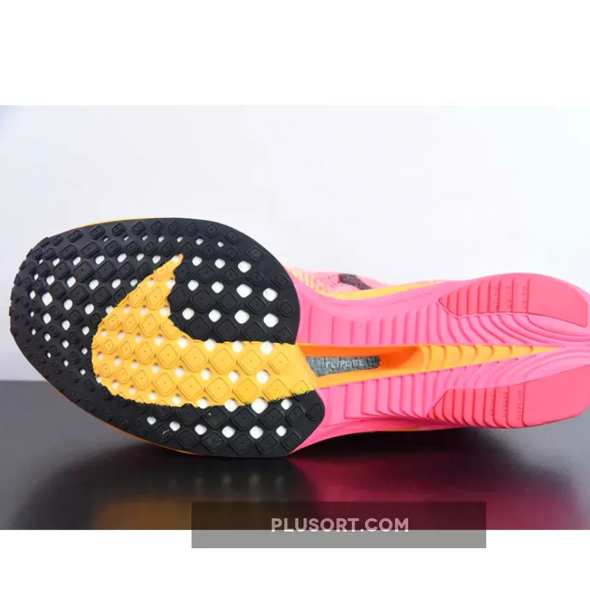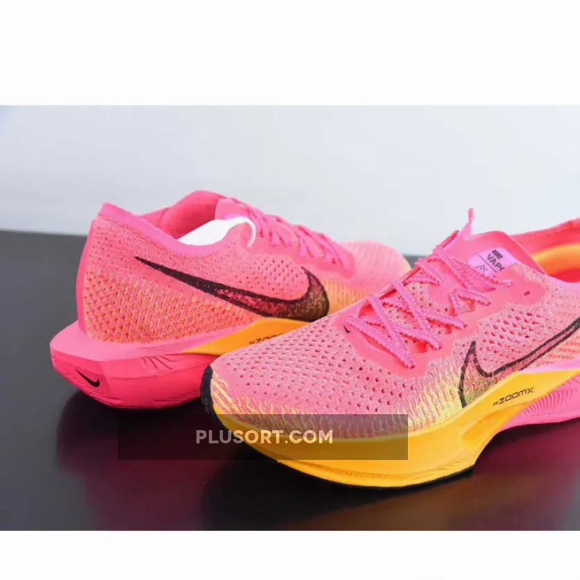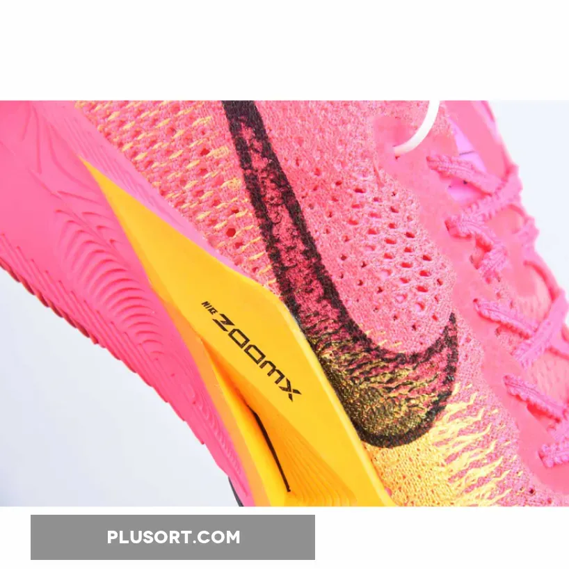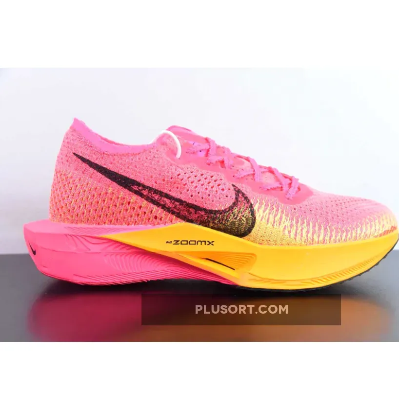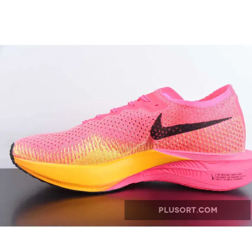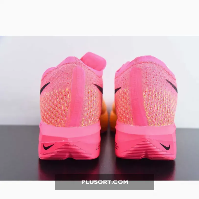 This ZoomX Vaporfly 3 features a daring combination of bold pinks and oranges that are sure to turn heads. The signature profile Swooshes on both the medial and lateral mid-panels are in a burgundy shade.