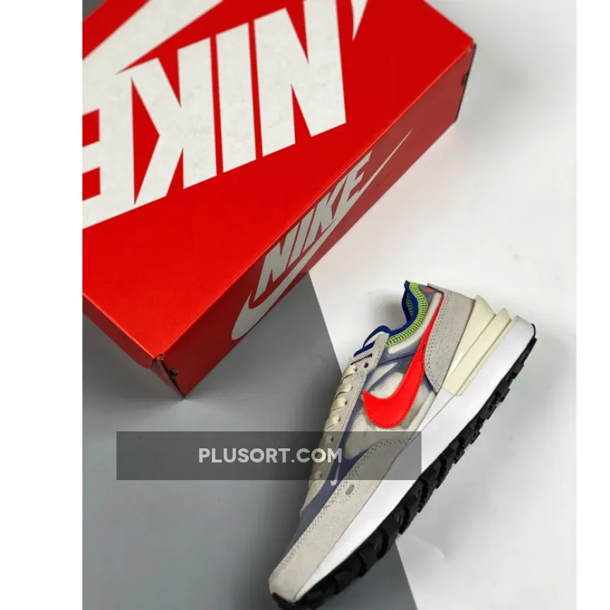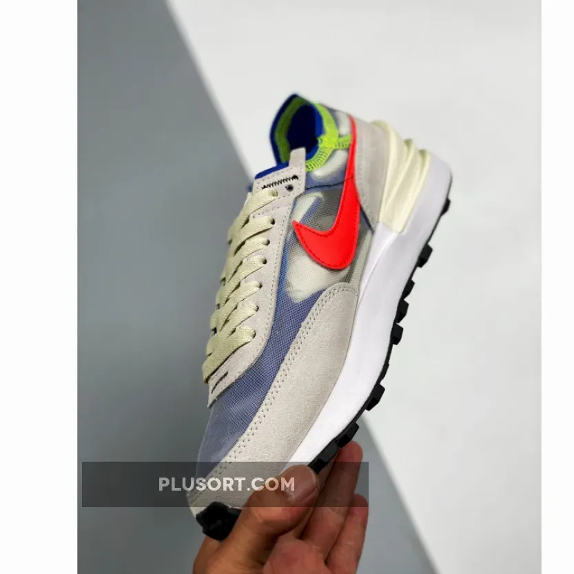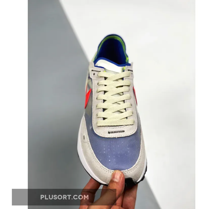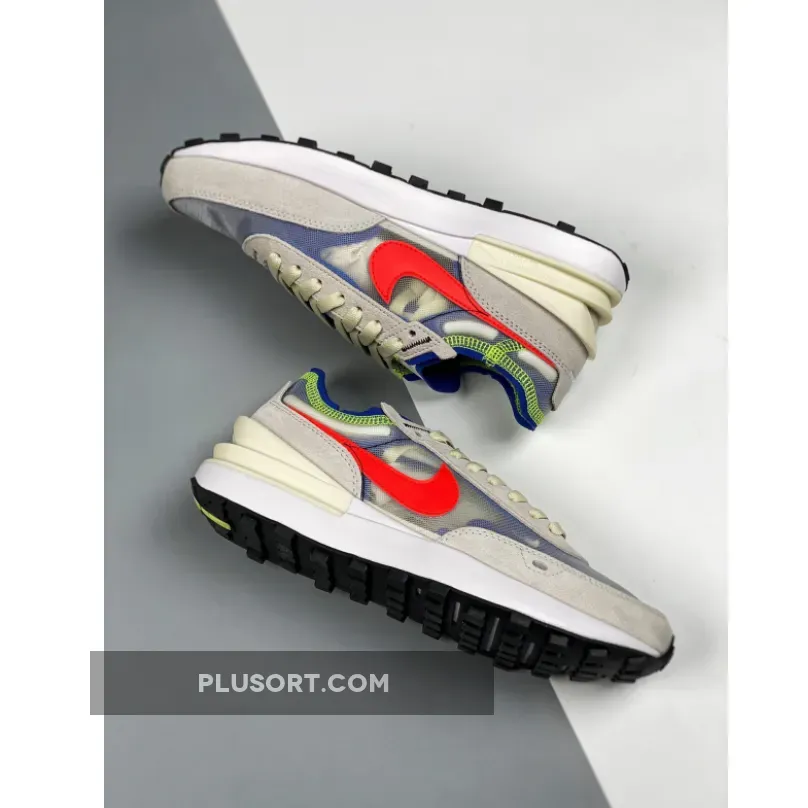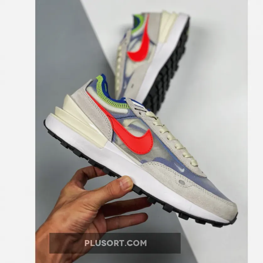 This offering of the Waffle One features a transparent mesh upper with Blue lining underneath detailed with Crimson leather Swooshes on the sides.