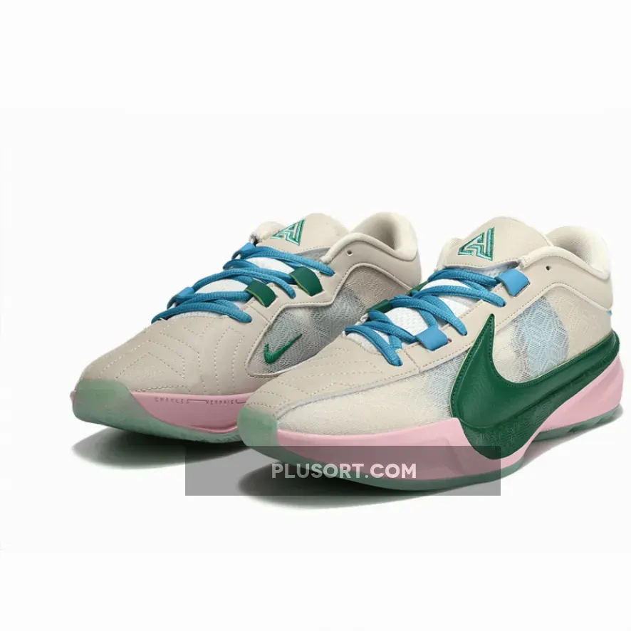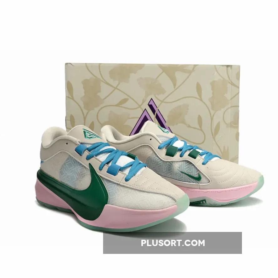 Giannis Antetokounmpo has always supported and pushed his three brothers, Thanasis, Kostas, and Alex, all through his playing career in the NBA. The Antetokounmpo brothers are featured prominently in the newest colorway of the Zoom Freak 5, inspired by their rise to the NBA.