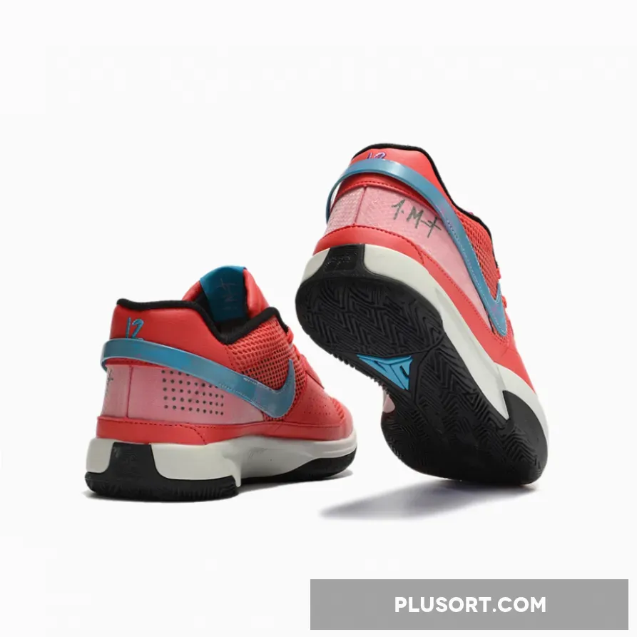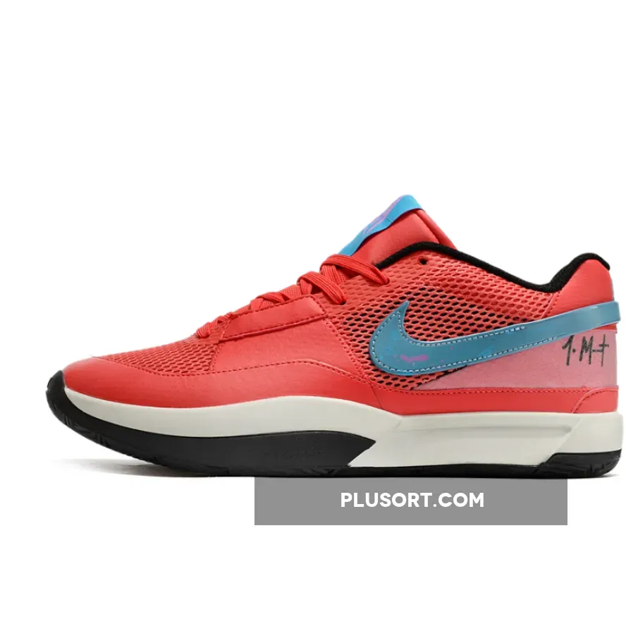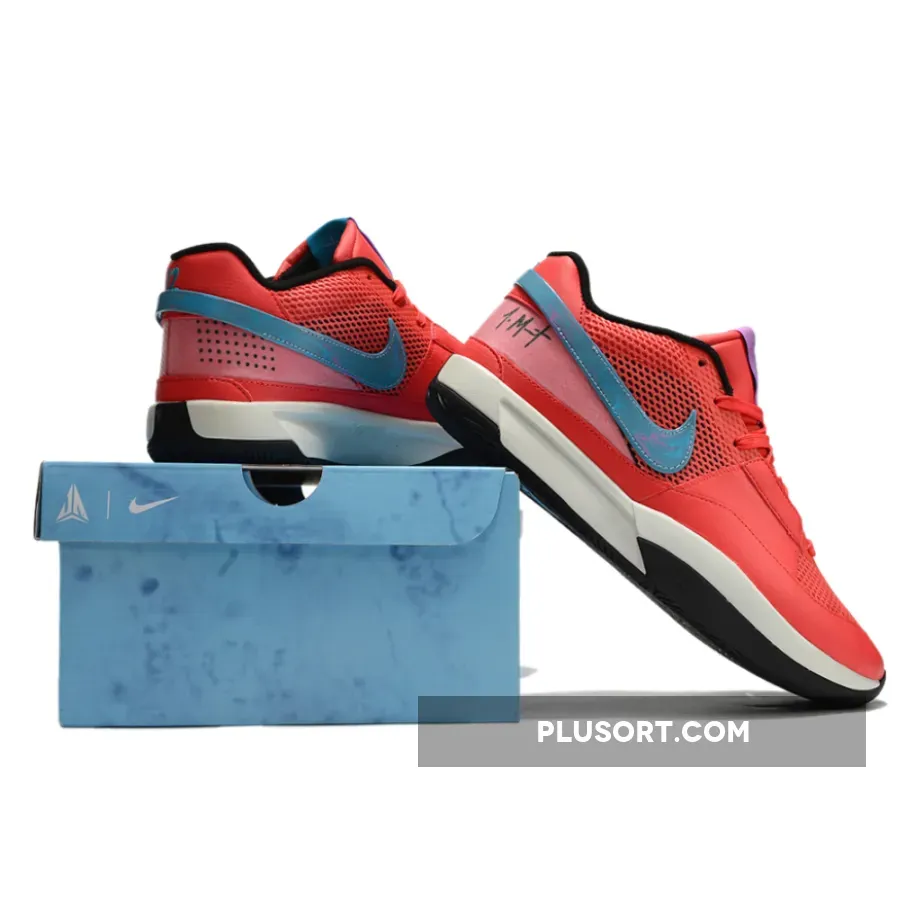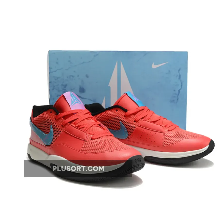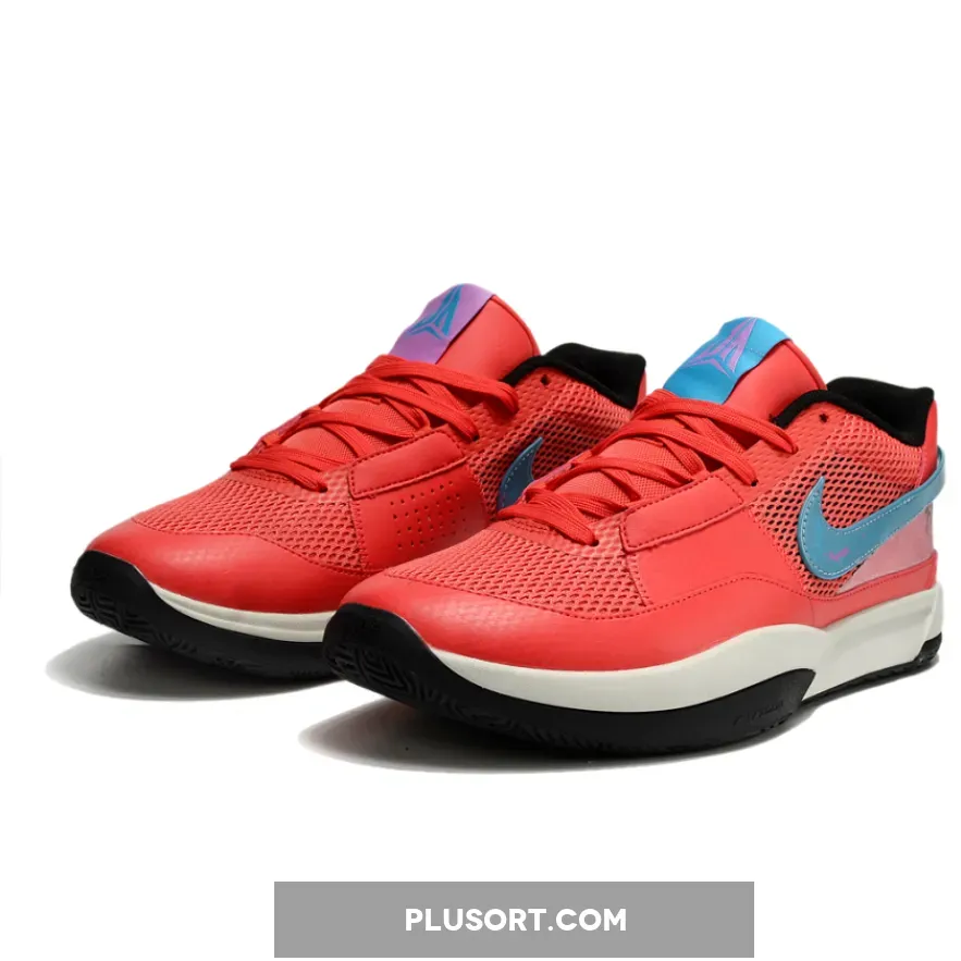 Continuing to harken to the ear-marked page in the titular section of the color wheel, the Nike Ja 1 now dresses in an overtly vibrant scheme with “Infrared” hues enveloping the mesh body, leather quarter panel, tongue construction and laces. Contrasted immediately at the jet-black nylon sock liner and tread, a supple Off-White treatment set across the midsole interrupts with neutrality. Elsewhere, bright sky blue and lilac shades pair off to anchor the tongue tabs and heel’s embroidered #12’s in a mismatched association while both the left and right foot’s full-length Swooshes come dipped in the presiding blue finish.