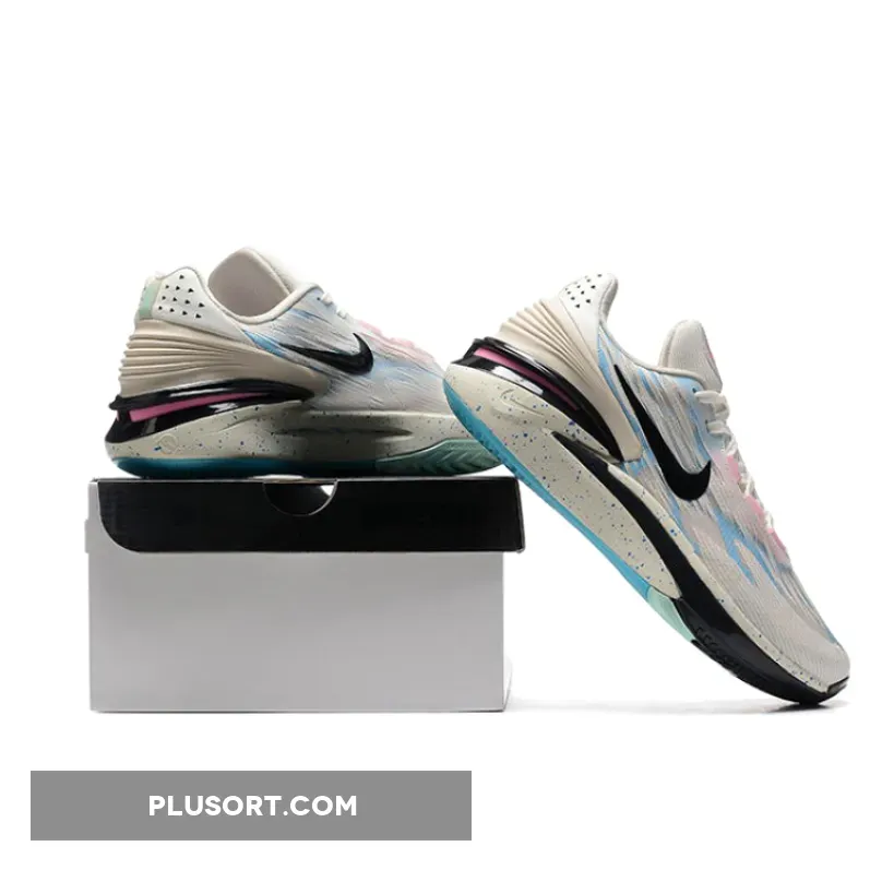 Written across the tongue alongside a thematically complementary graphic, the above text stands above a bright, Spring-appropriate take on the Nike Zoom GT Cut 2. Though it may start with a white base, the pair incorporates many a loud hue, subtly conjuring to mind images of South Beach with its light pinks and blues. These appear along the weave of the upper, the eyelets, and even the sole and heel, taking shine away from the blacked-out finish of the fixtures immediately adjacent.