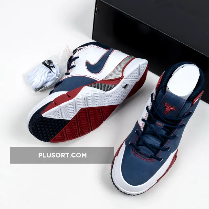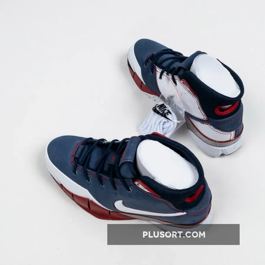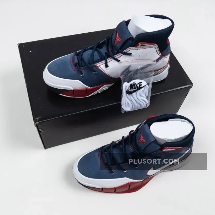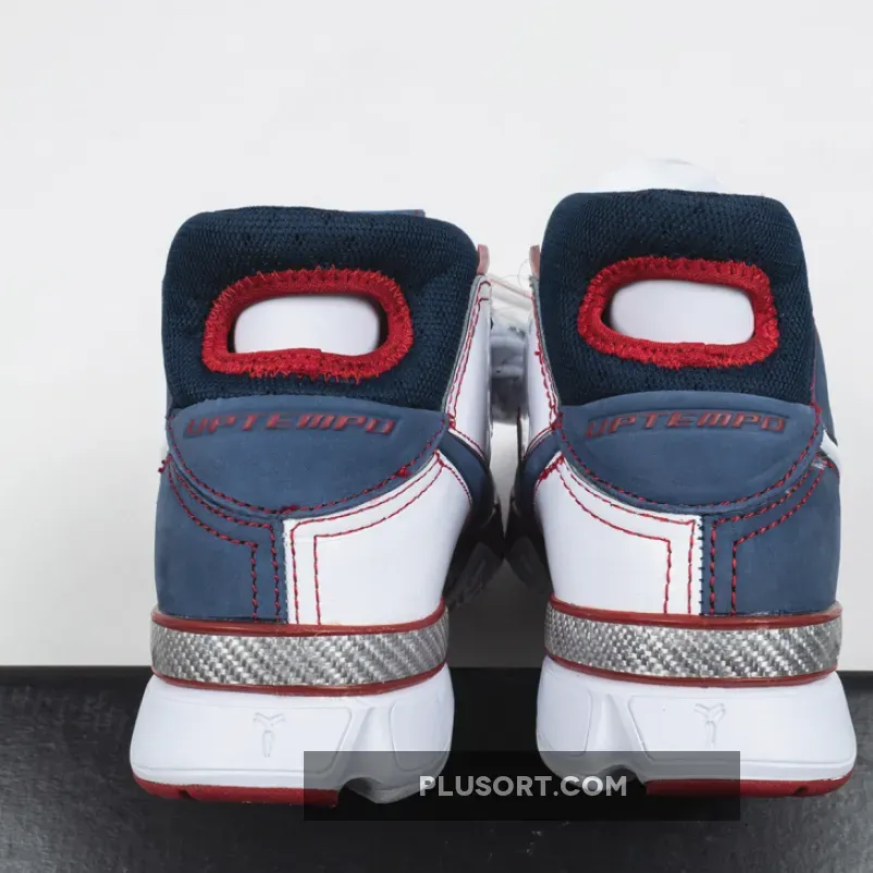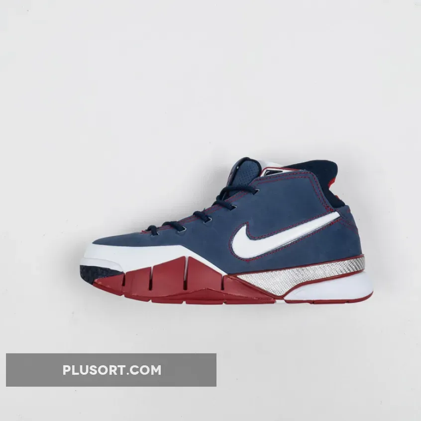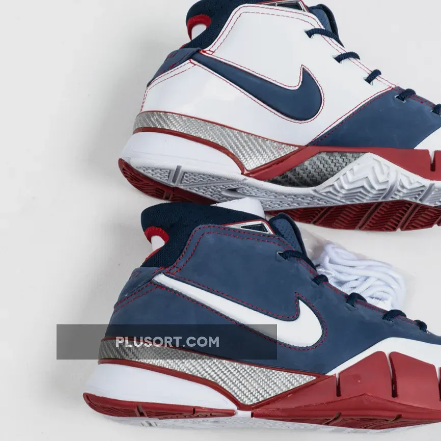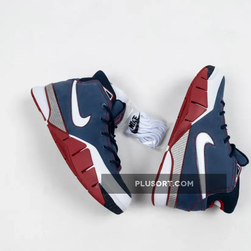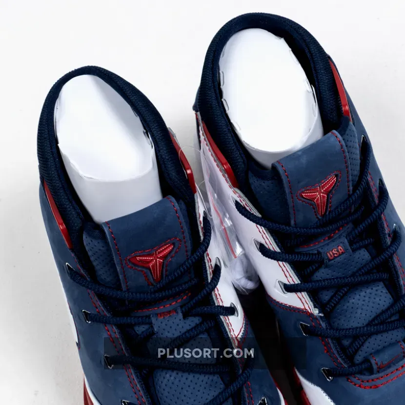 Dressed in a patriotic color scheme. This Nike Kobe 1 Protro features a Navy Blue suede and White leather upper paired with Red accents and Silver detailing. As a nod to Team USA, the shoe comes completed with branded insoles.