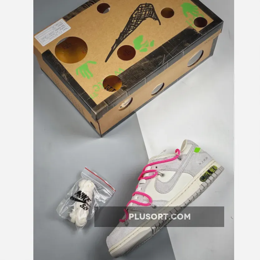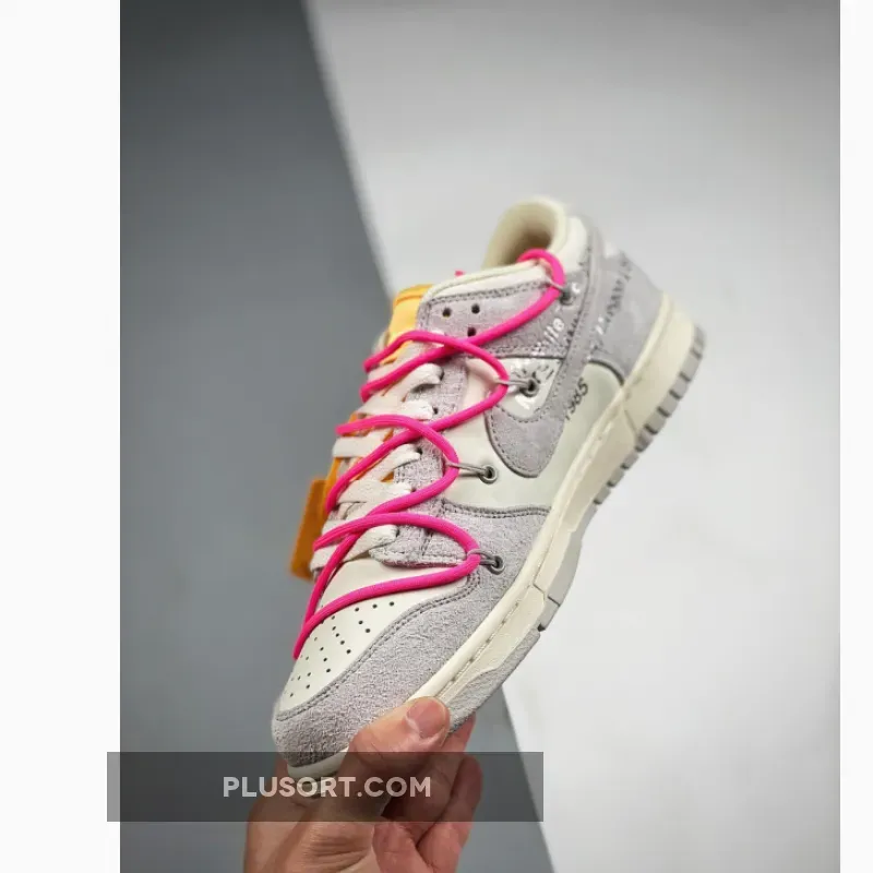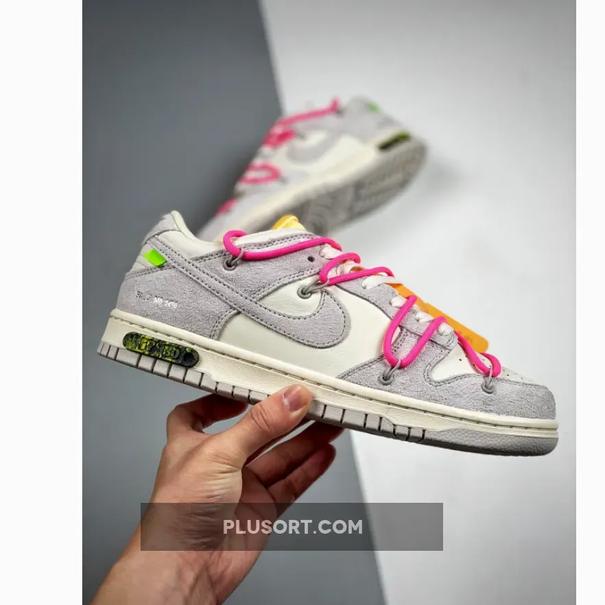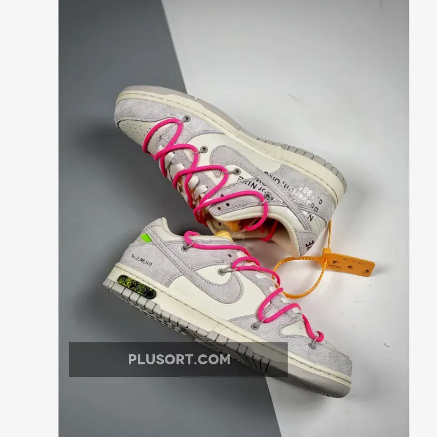 “I’m thoroughly impressed with my Off-White x Nike Dunk Low ’17 of 50′. The Sail/Neutral Grey/ Hyper Pink colorway is stunning and the quality is top-notch. The leather upper feels premium, and the suede overlays add a nice texture. The attention to detail, from the metallic Swoosh to the printed Helvetica text, shows Off-White’s signature flair. 5/5 stars – would highly recommend!”